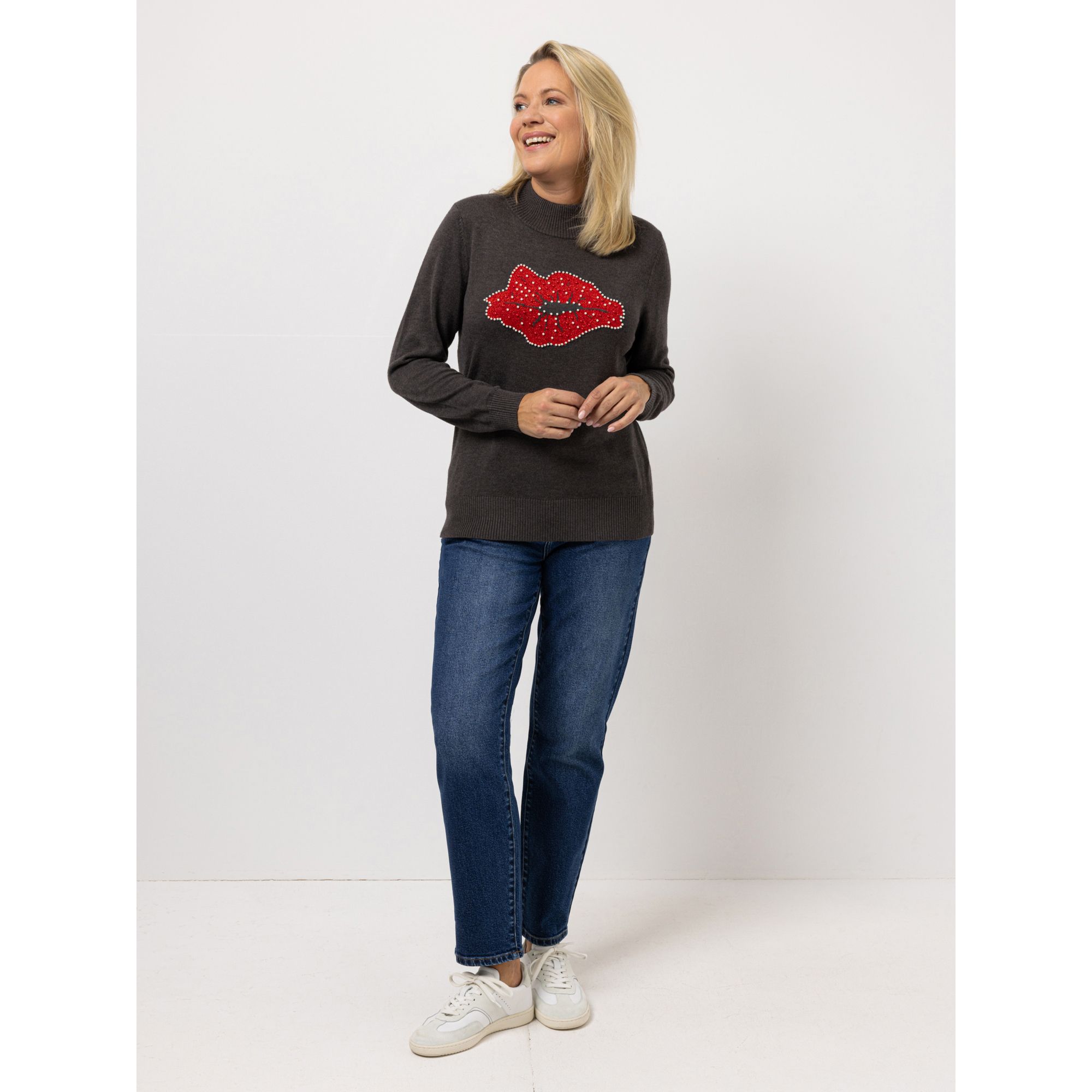KILIAN KERNER SENSES Pullover, Langarm kurzer Stehkragen Kuss mit Perlen figurumspielend