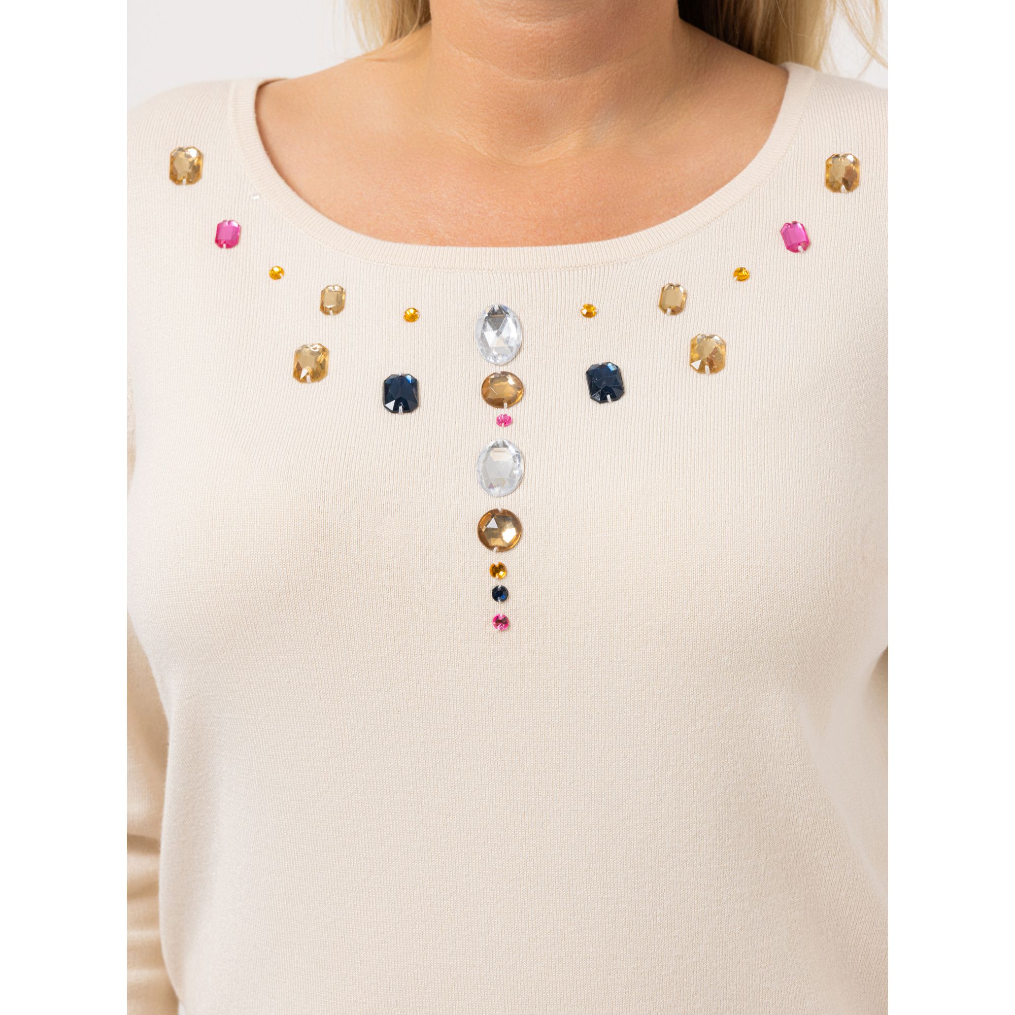 Hingucker to go: Der KILIAN KERNER SENSES Pullover in Ecru ist mit der ikonischen Kuss-Plakette versehen und mit Schmucksteinen besetzt.