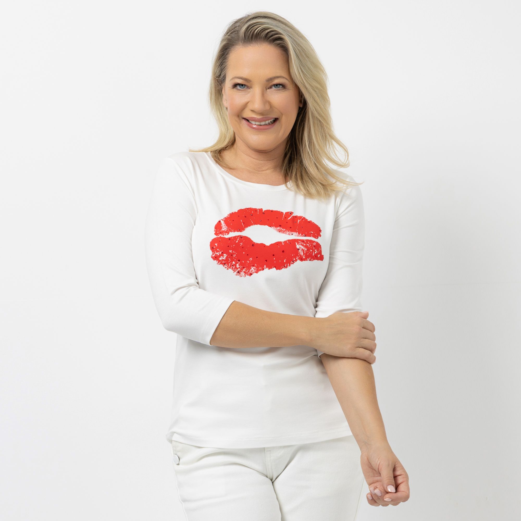 KILIAN KERNER SENSES Shirt, 3/4-Arm Print mit Strass OEKO-TEX®Standard 100 figurumspielend