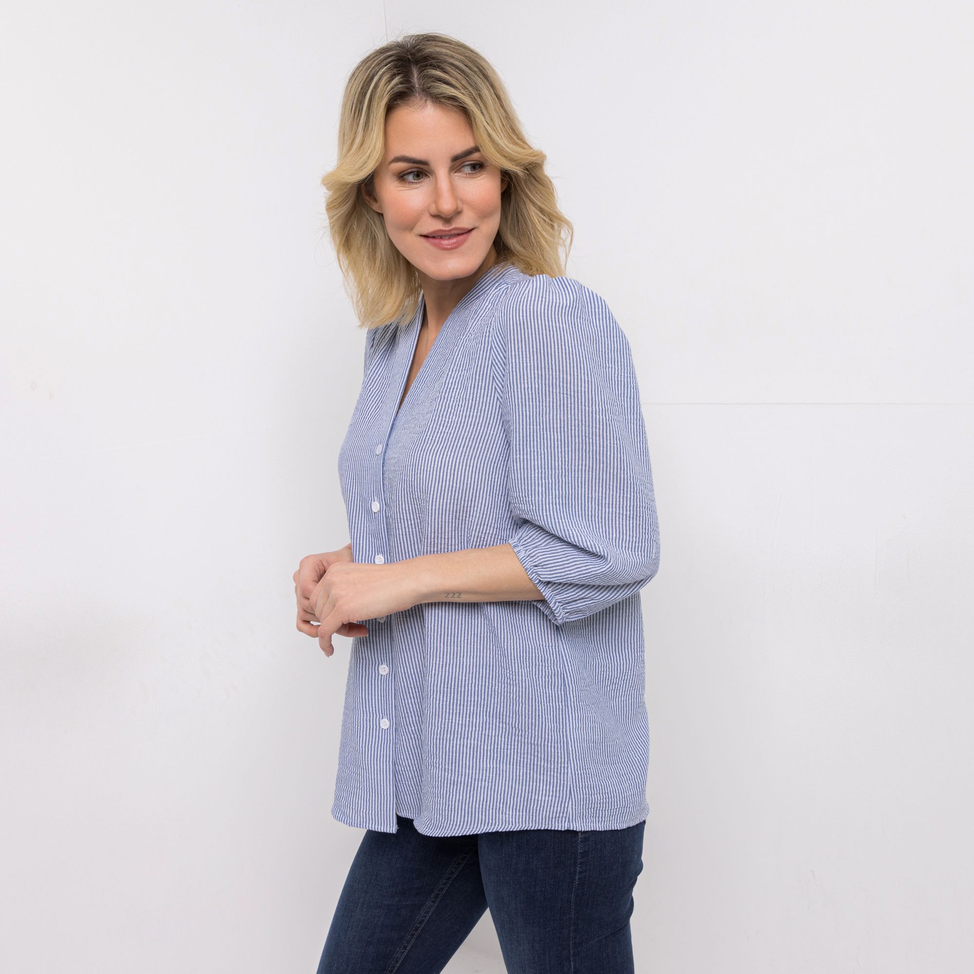 KIM & CO. Bluse, 3/4-Arm Chambray Knopfleiste leger weit