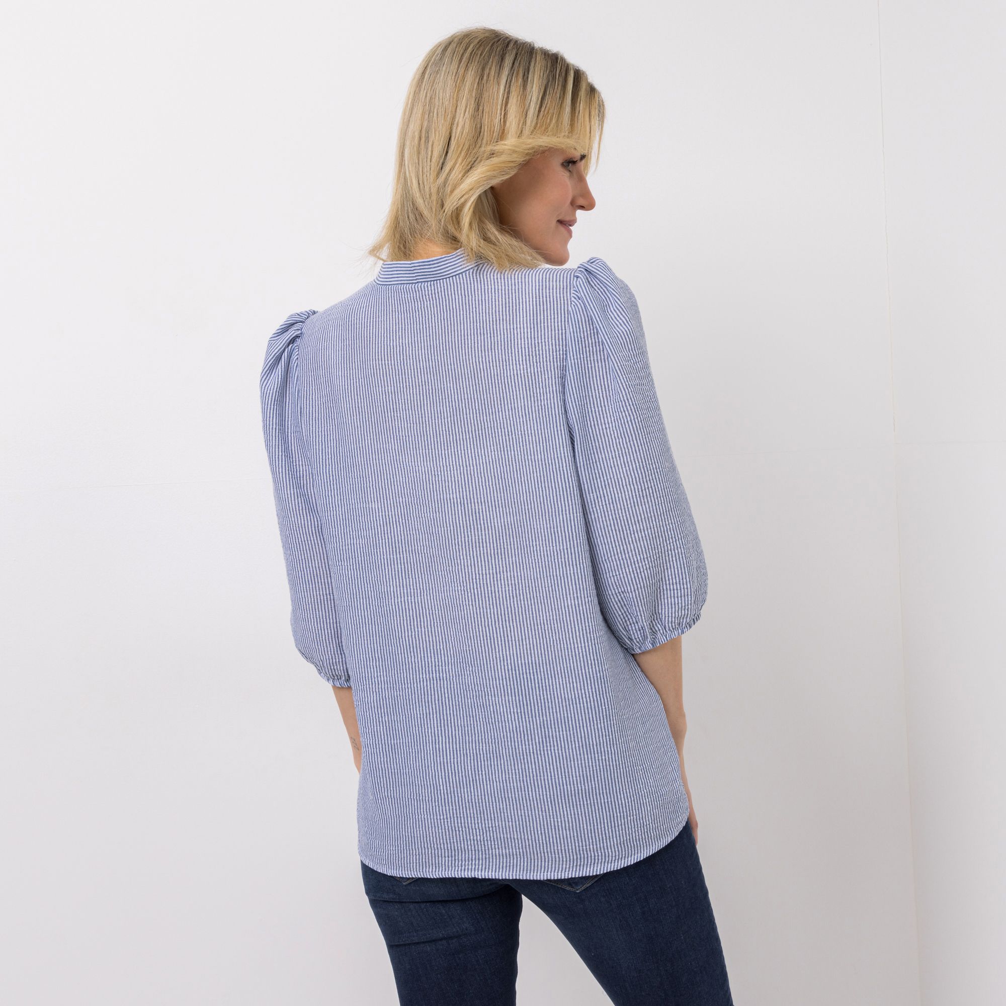• 3/4-Arm mit Gummizug am Ärmelsaum