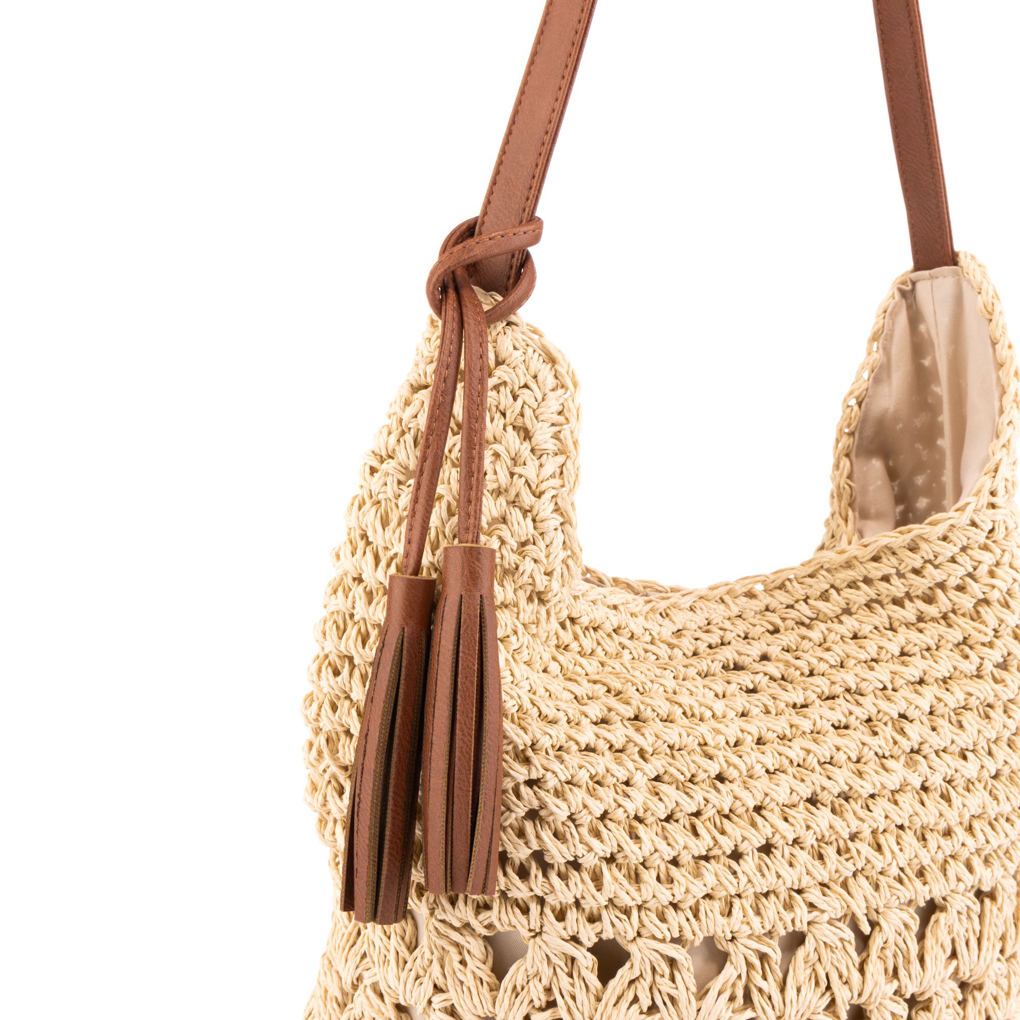 KIM & CO. Tasche Papierstroh-Geflecht abnehmbare Quasten Riemen: 59cm