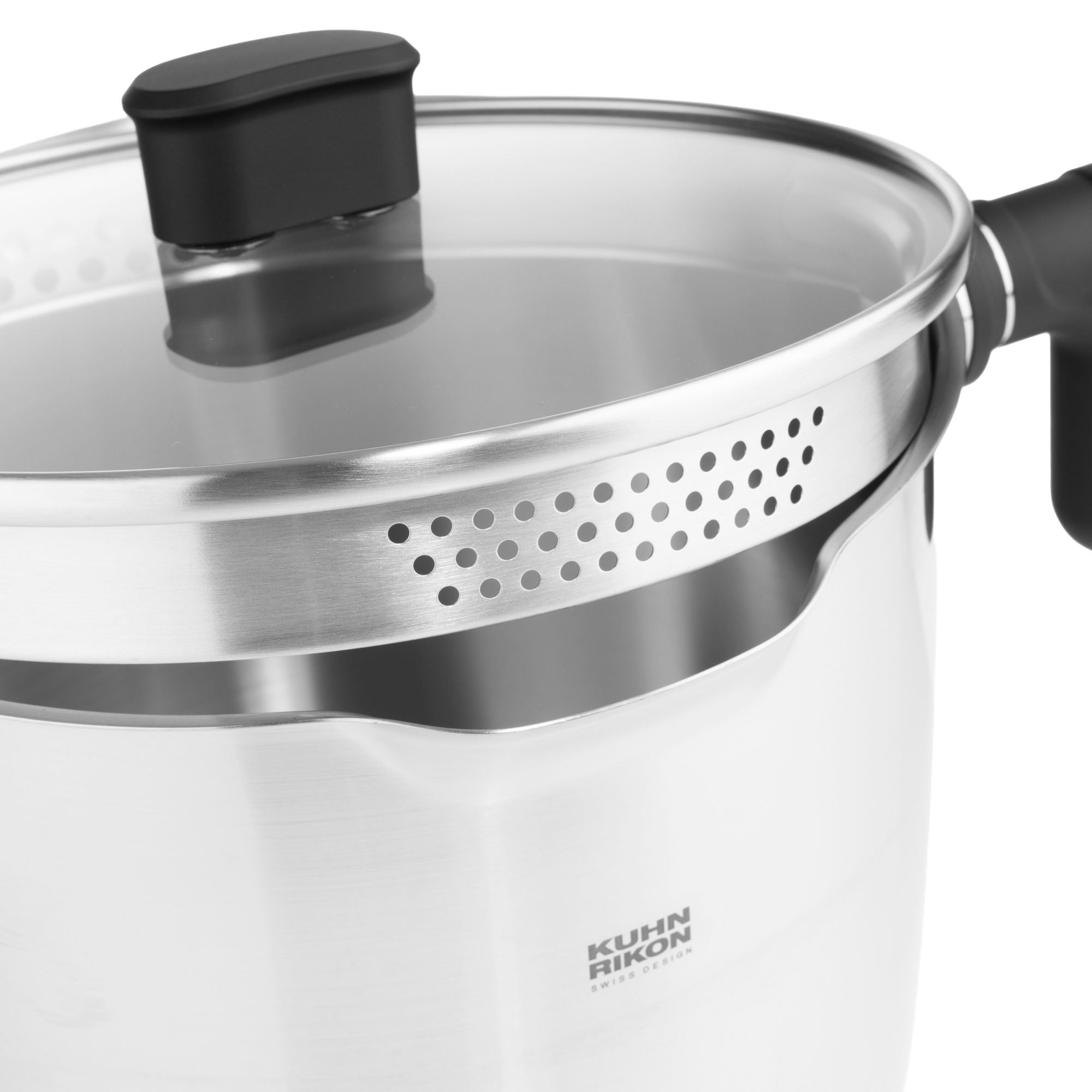 - kippbarer Griff ermöglicht das sichere Abgießen direkt aus dem Topf