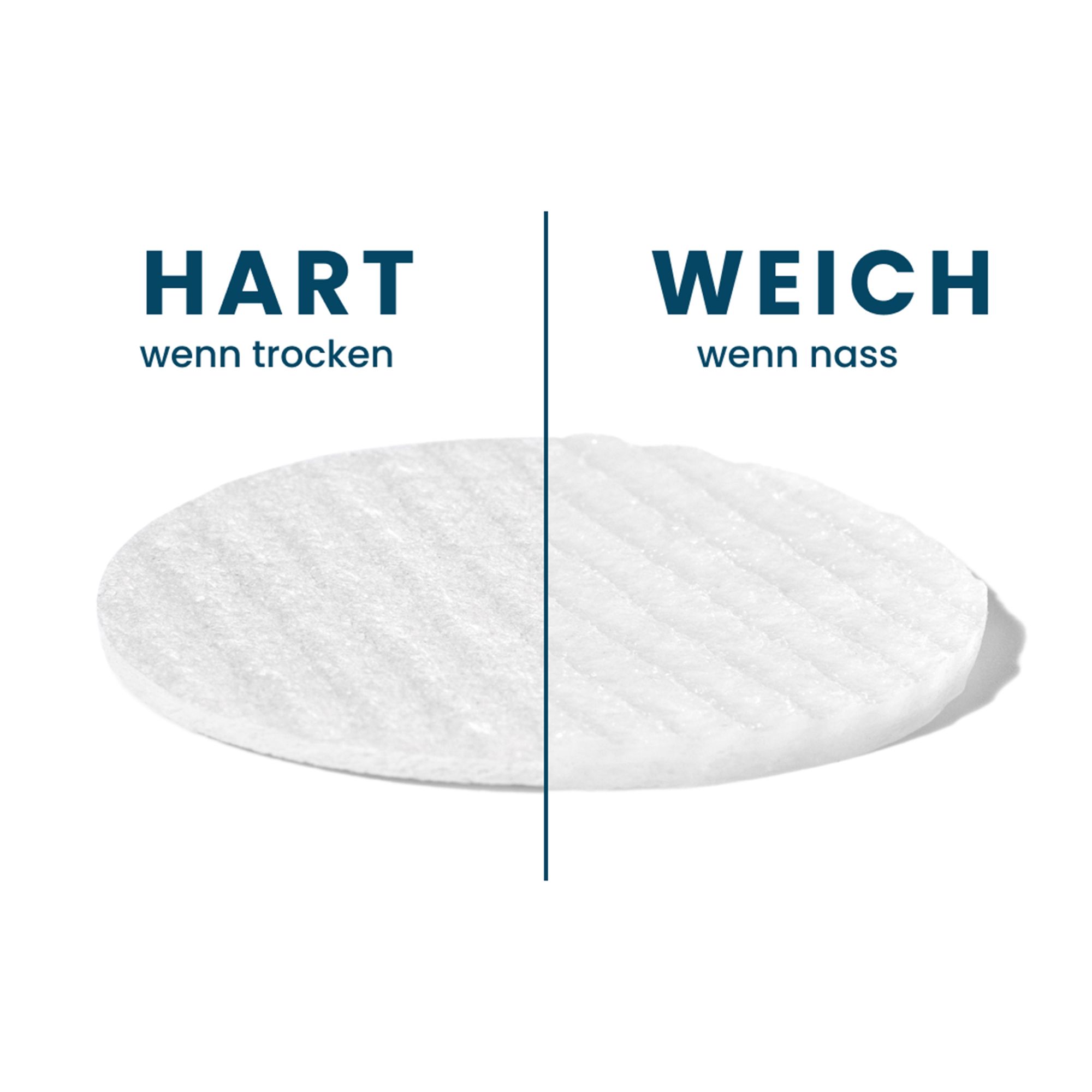 • Pads sind trocken fest, werden beim Befeuchten angenehm weich