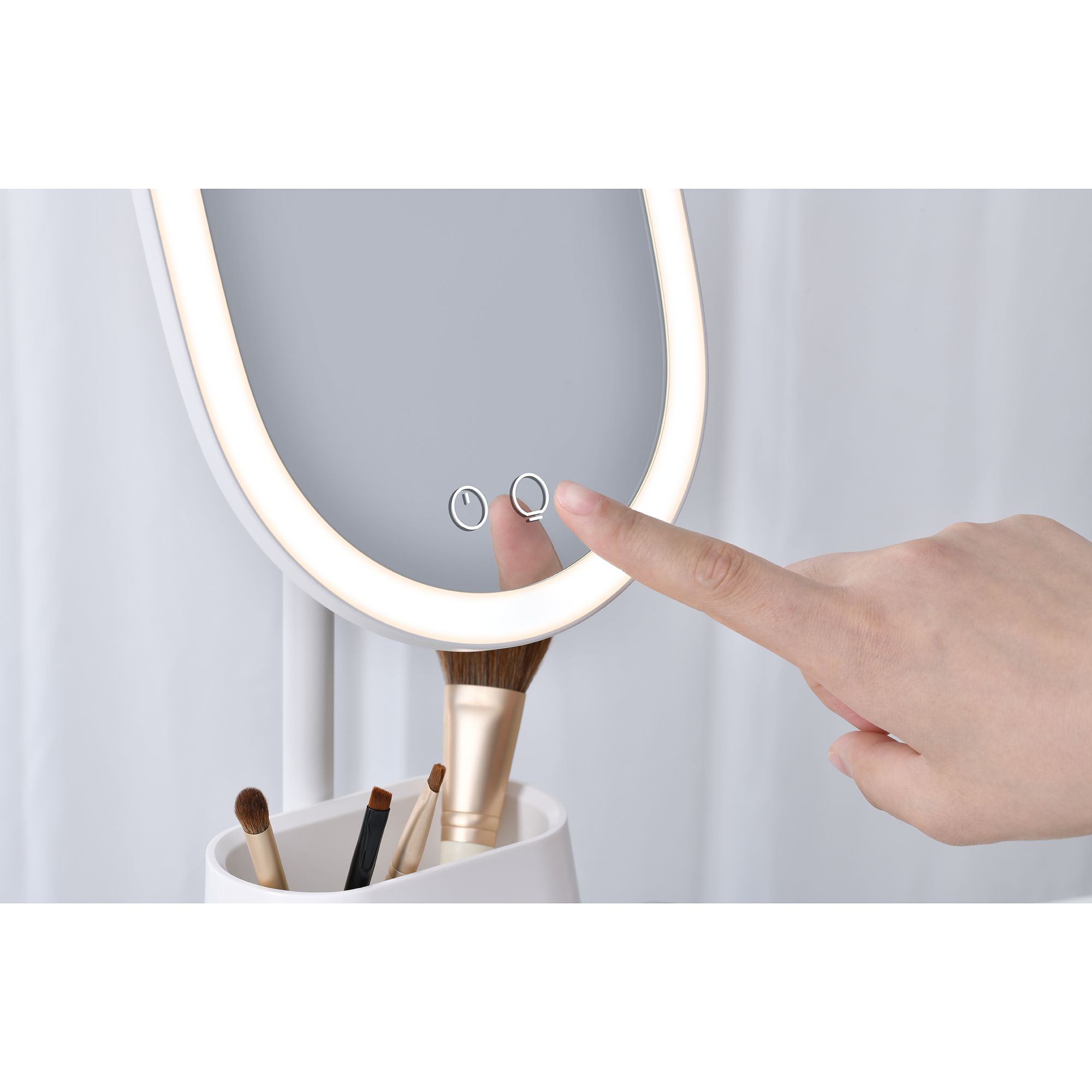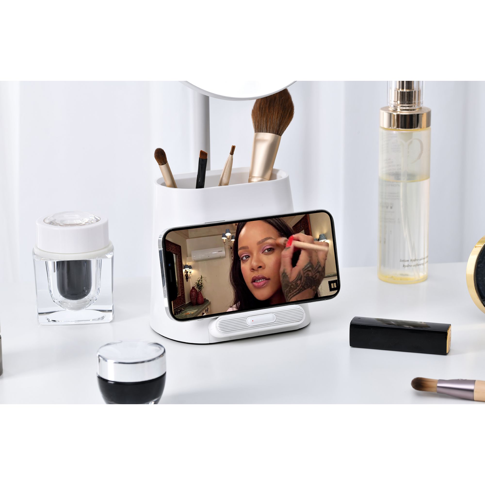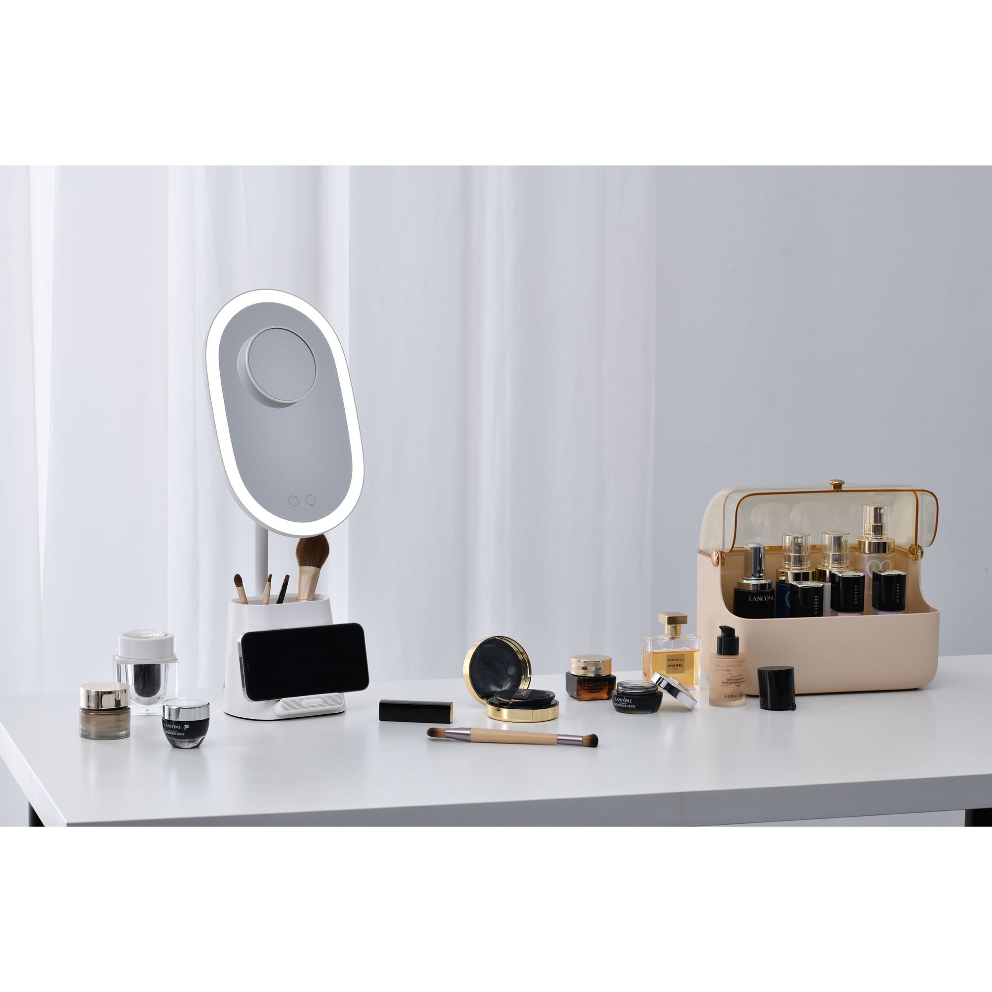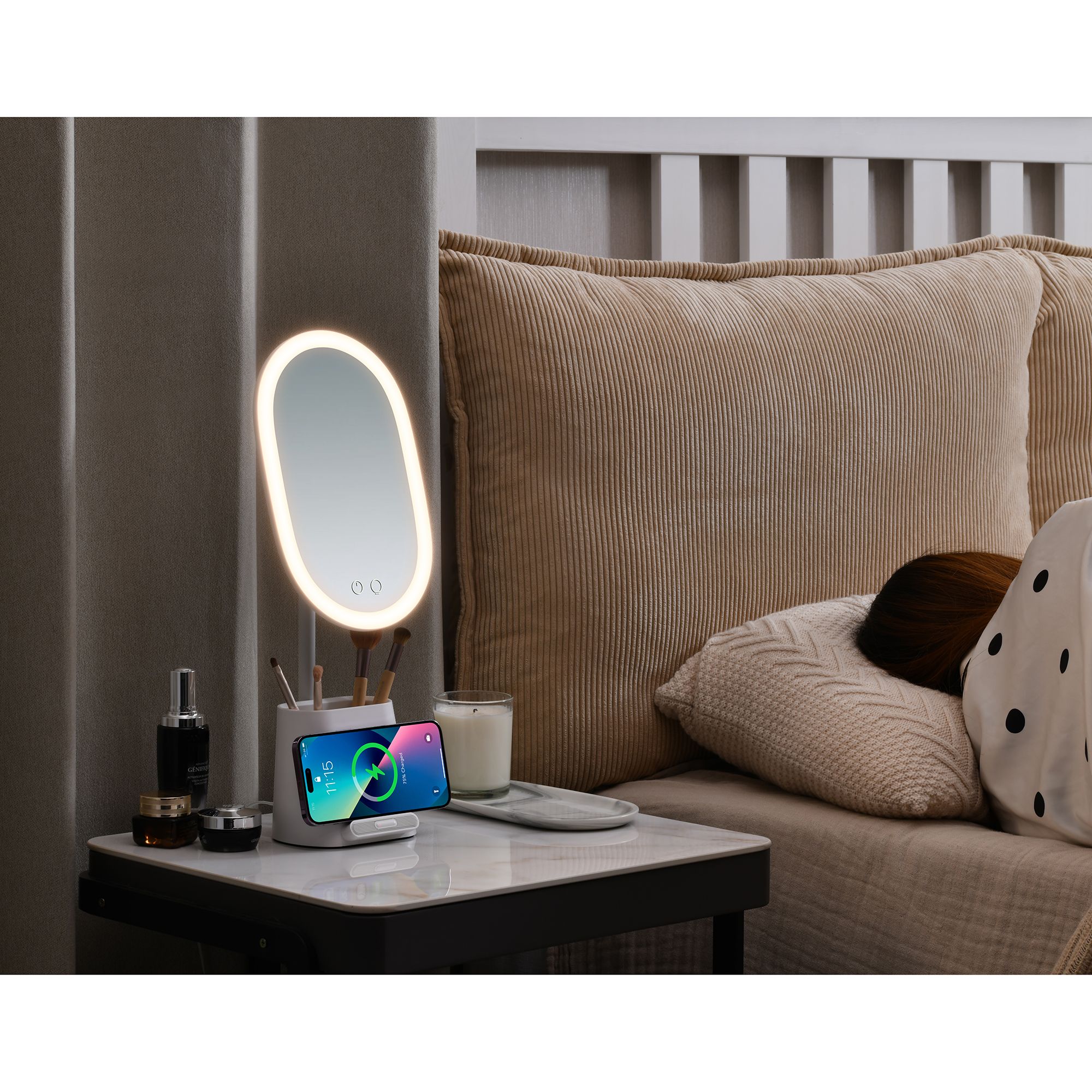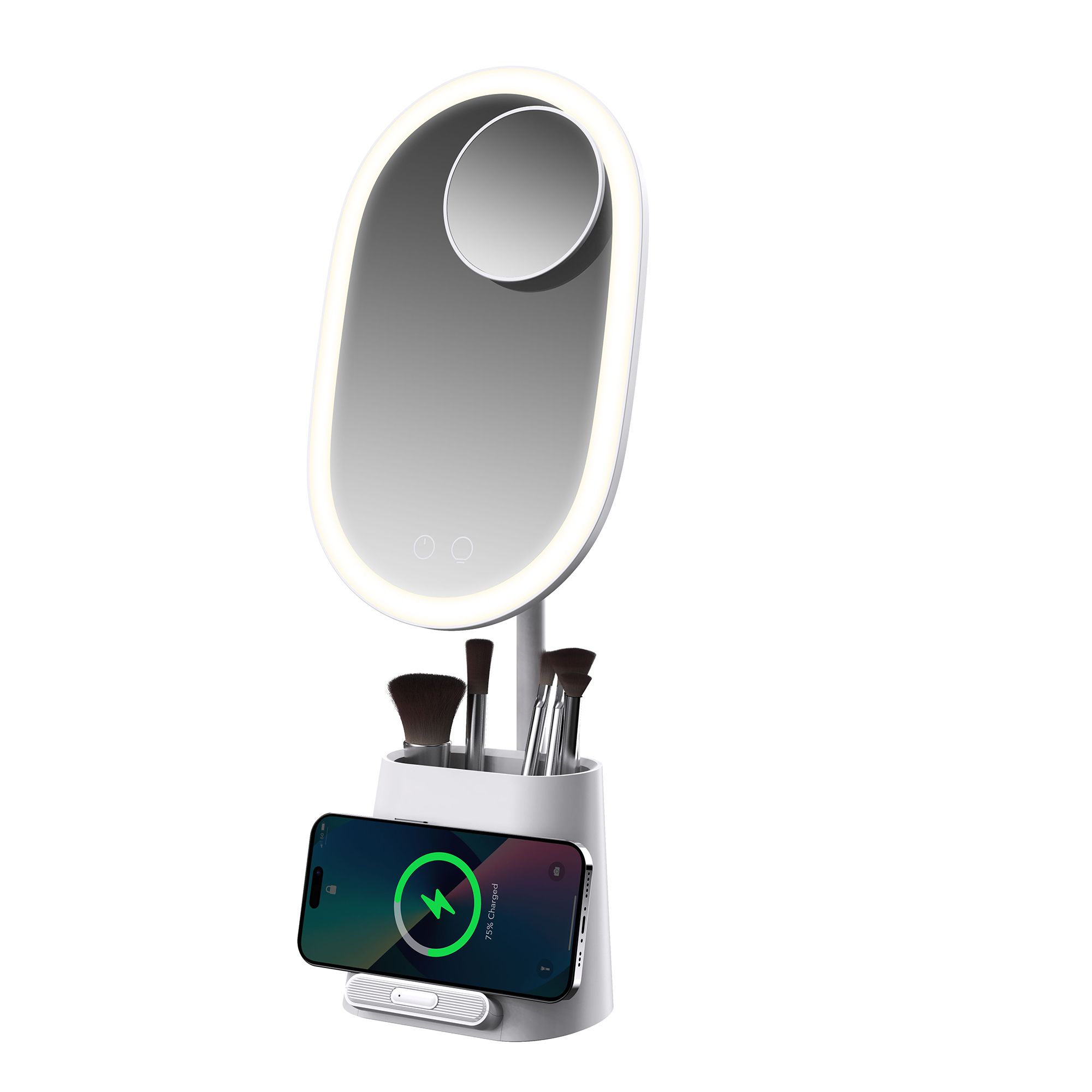 LED-Kosmetikspiegel mit Wireless Charger 3 Lichtfarben & Helligkeitsstufen inkl. Pinselhalter