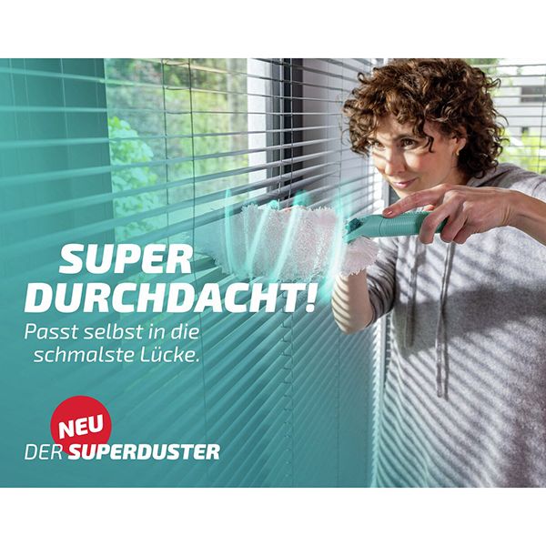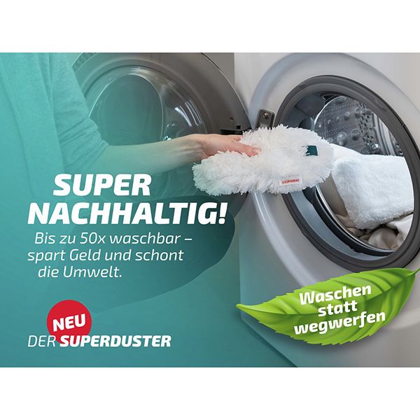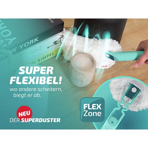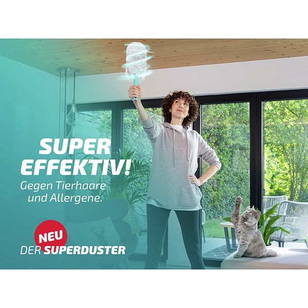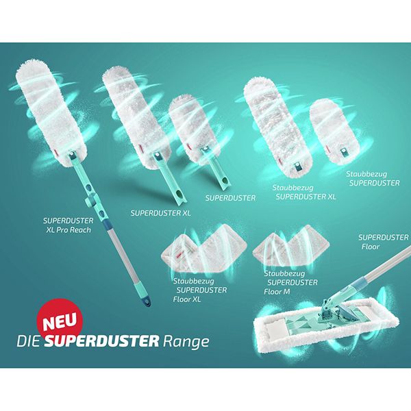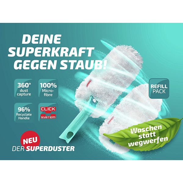 Mit dem LEIFHEIT Staubwedel Superduster erledigst du die Hausarbeit im Handumdrehen. Der 360°-Mikrofaser-Staubwedel sorgt dafür, dass Staub, Haare und Allergene sauber aufgenommen werden. Dank des ergonomischen Griffs aus Recycling-Kunststoff liegt der Wedel besonders angenehm in der Hand und macht auch längere Reinigungsrunden komfortabel. Und das praktische Click-System ermöglicht das Anbringen von Stielen, damit selbst hohe oder schwer erreichbare Stellen sicher gereinigt werden können.