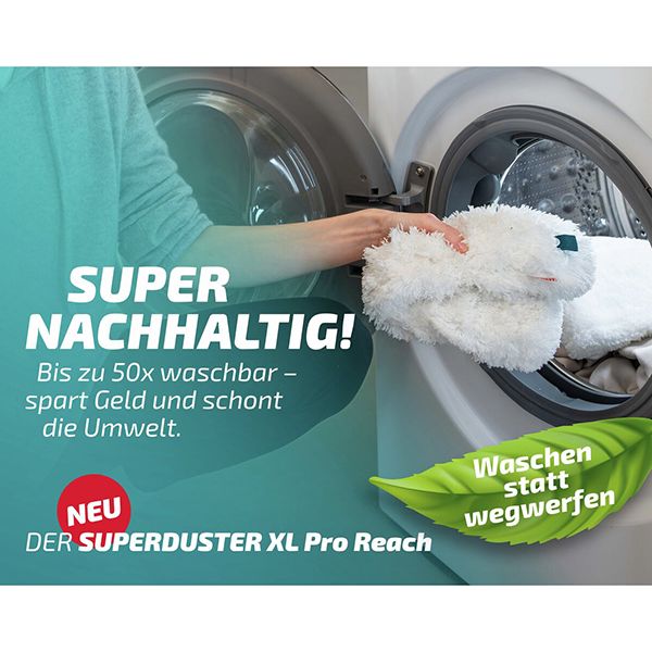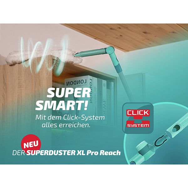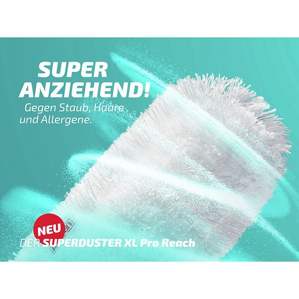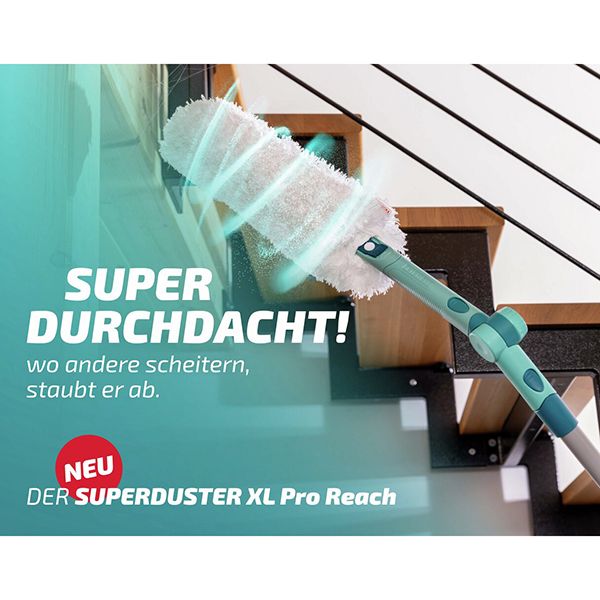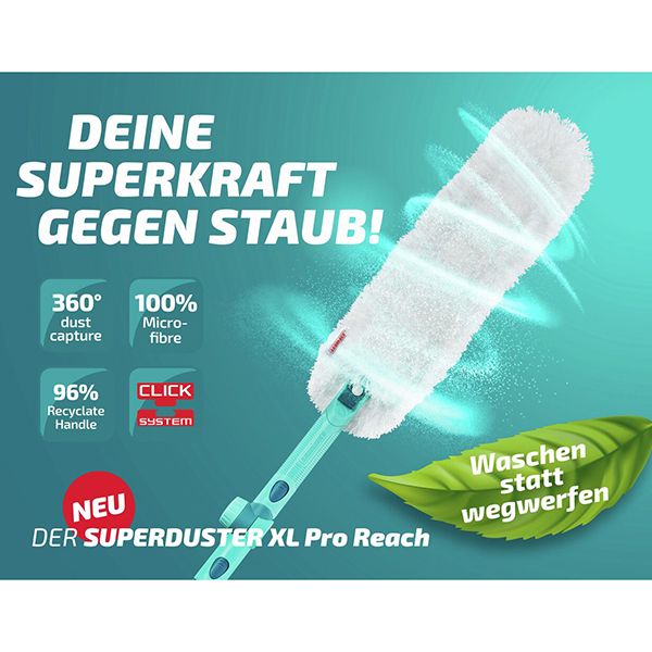 Mit dem LEIFHEIT Staubwedel Superduster XL Pro Reach kannst du dank 43-cm-langem Stiel selbst hohe Decken und schwer erreichbare Stellen problemlos von Staub befreien. Der 360°-Mikrofaser-Staubwedel sorgt dafür, dass Staub, Haare und Allergene sauber aufgenommen werden. Dank des ergonomischen Griffs aus Recycling-Kunststoff liegt der Wedel besonders angenehm in der Hand und das um 180°-kippbare Gelenk. bietet besondere Flexibilität.