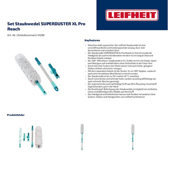- mit LEIFHEIT Click-System kompatibel für flexible Stielverlängerung