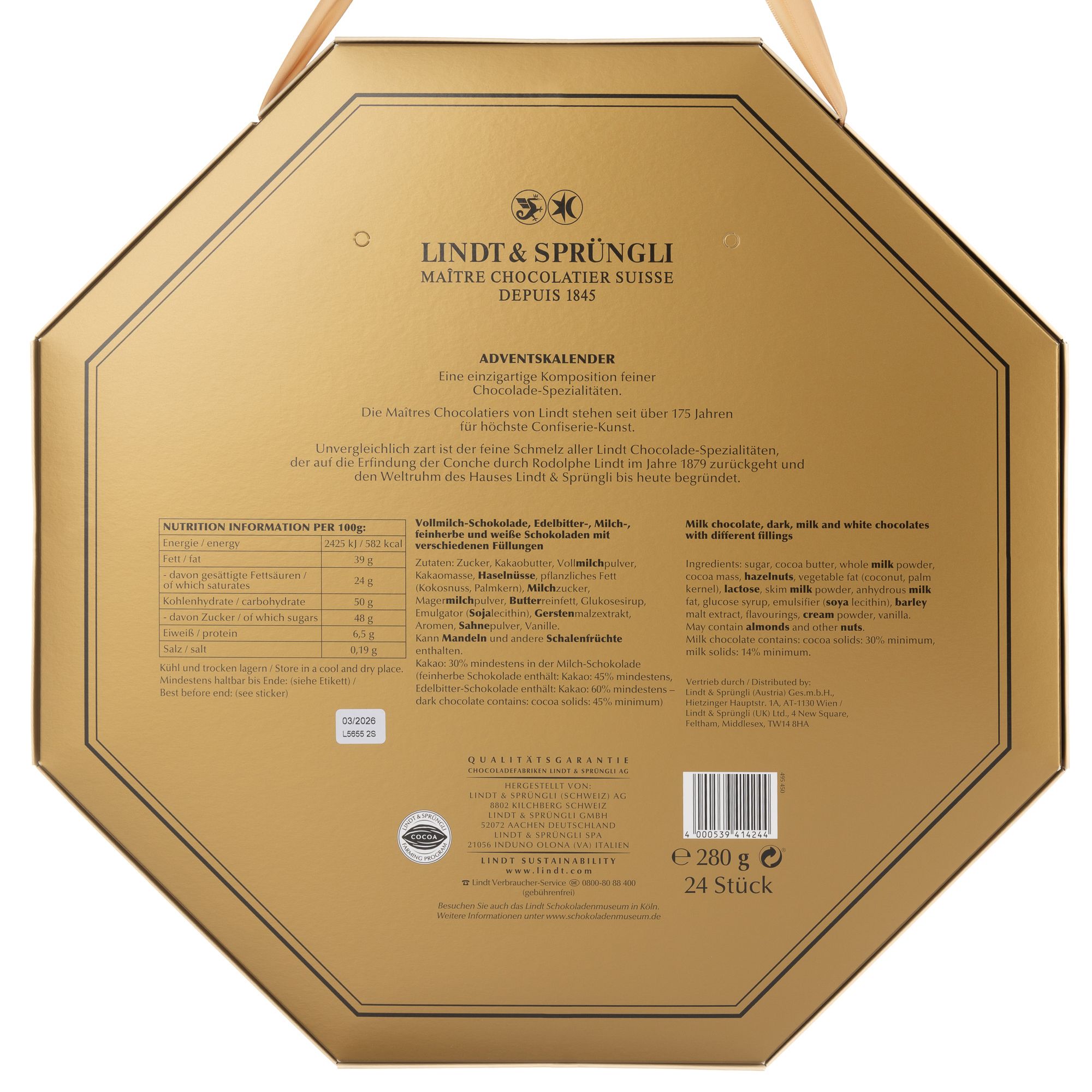 Mit dem LINDT Adventskalender in festlicher Türkranz-Optik erwartet dich jeden Tag eine andere schokoladige Überraschung!