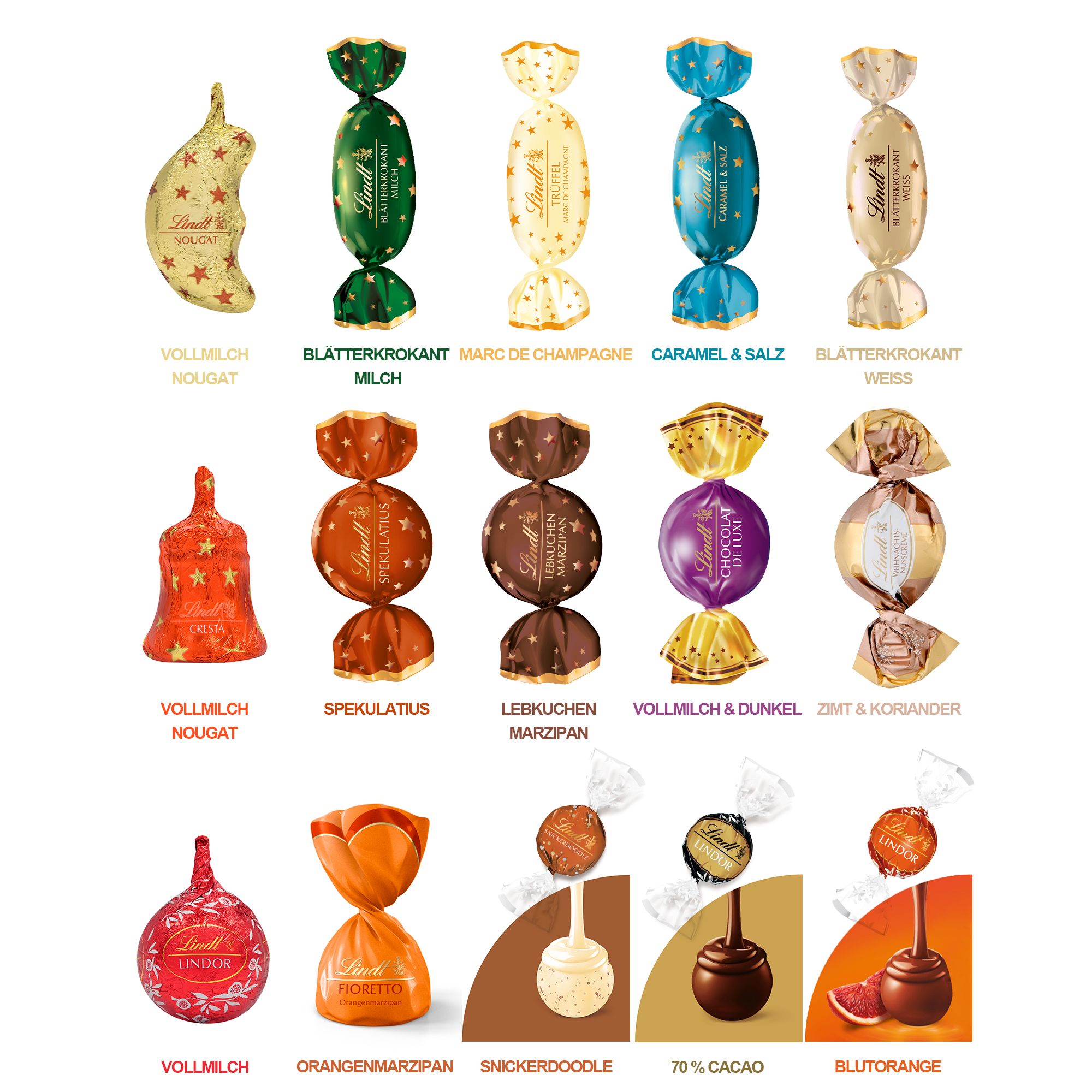 Was wäre die besinnliche Jahreszeit ohne genussvolle Schokoladenmomente? Mit der weihnachtlichen Vielfalt von LINDT kannst du nicht nur den Weihnachtsteller füllen, sondern auch ganz besonderen Menschen eine Gaumenschmaus-Freude machen. Freu dich auf 15 Sorten zartschmelzenden Genuss!