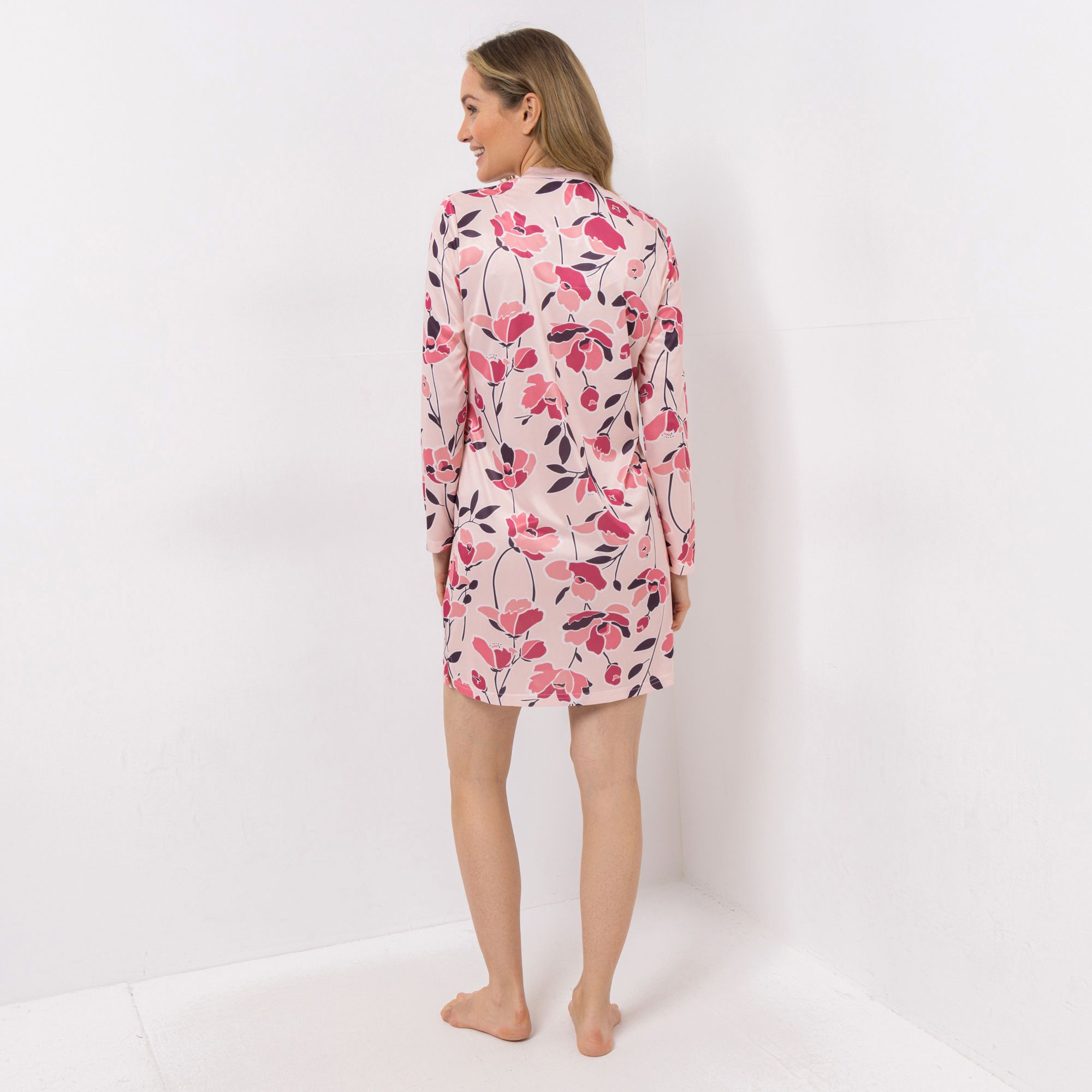 LITTLE ROSE Big Shirt, 1/1-Länge Mikrofaser Satin-Details Seitenschlitze