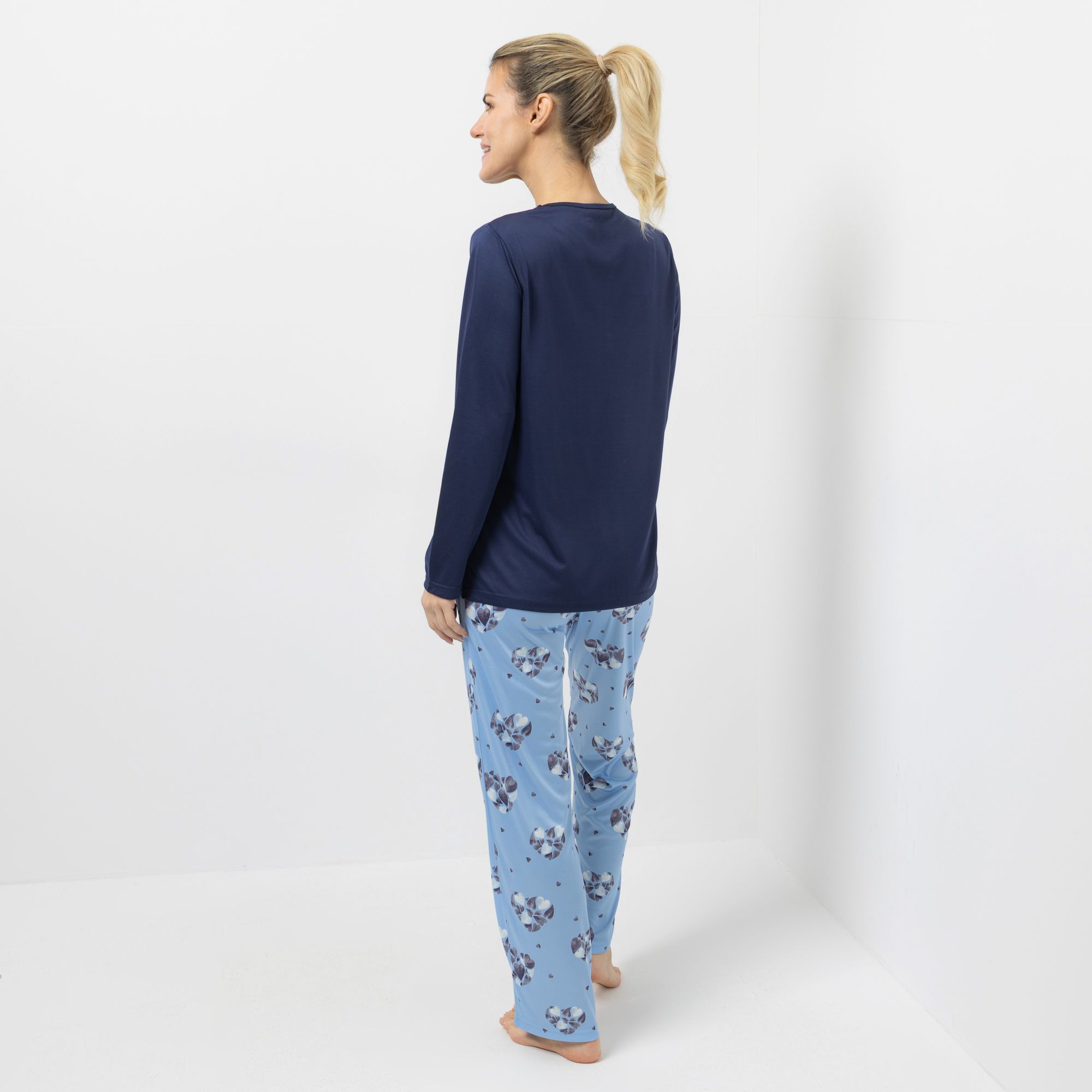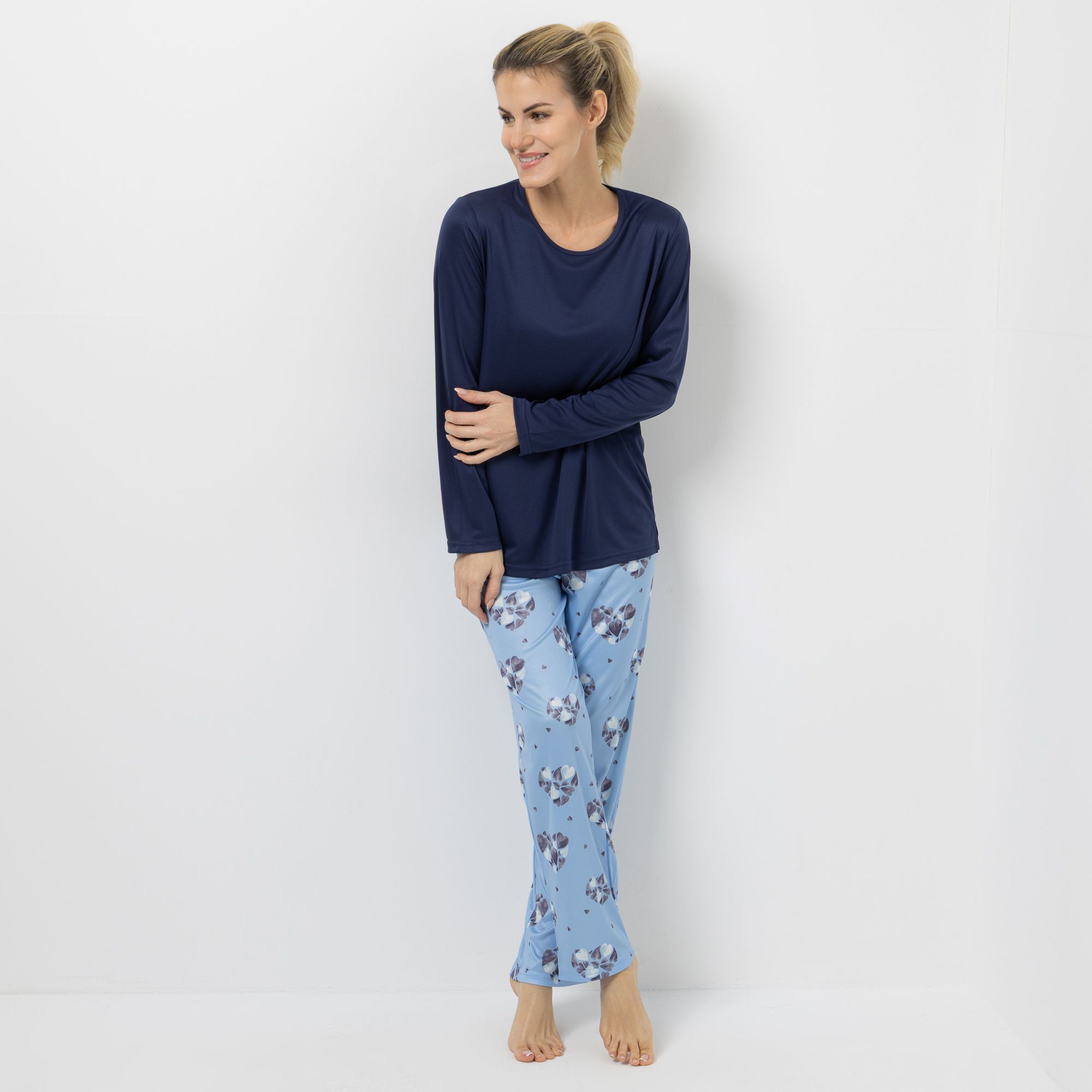 LITTLE ROSE Pyjama, 1/1-Länge Mikrofasermischung Rundhalsausschnitt bedruckte Hose