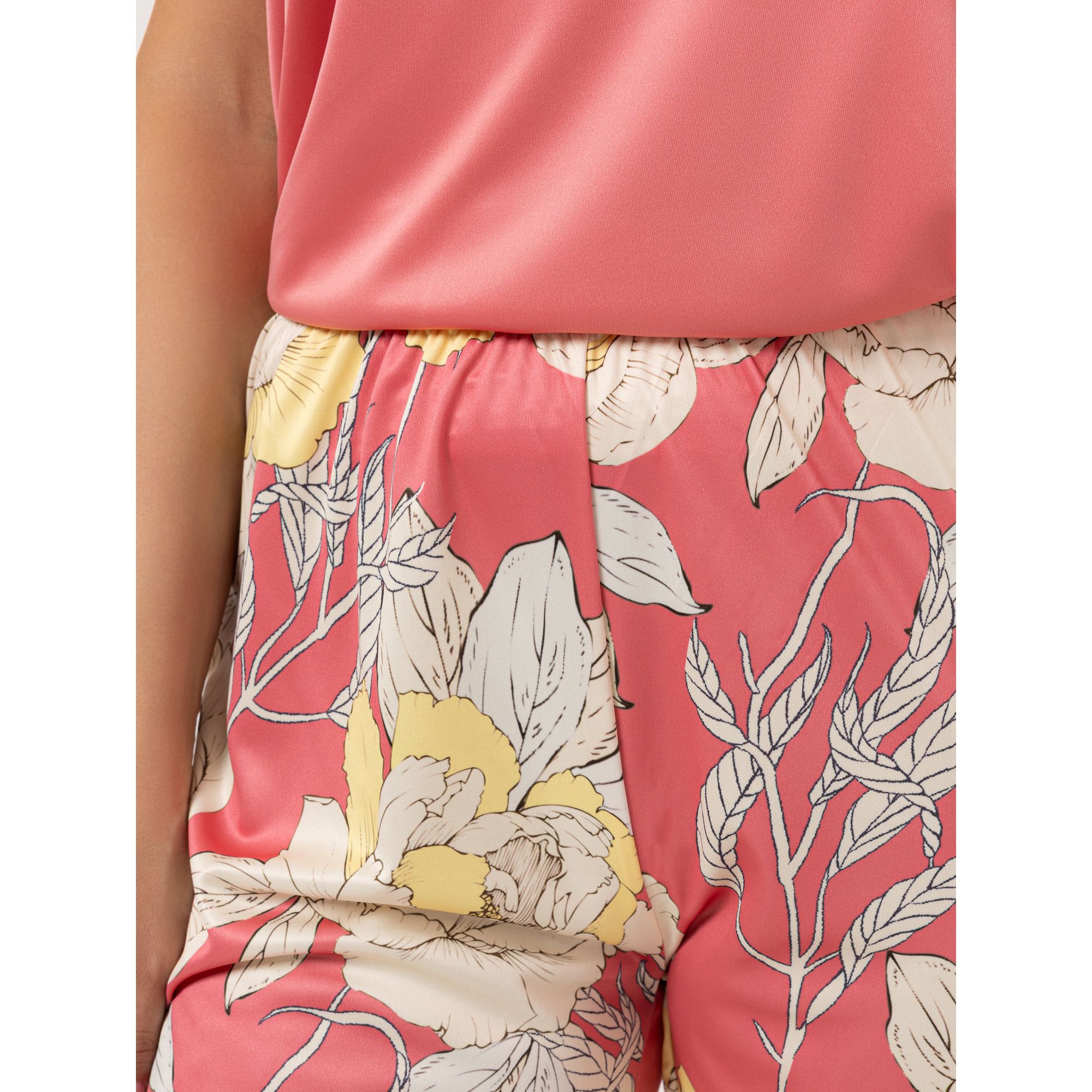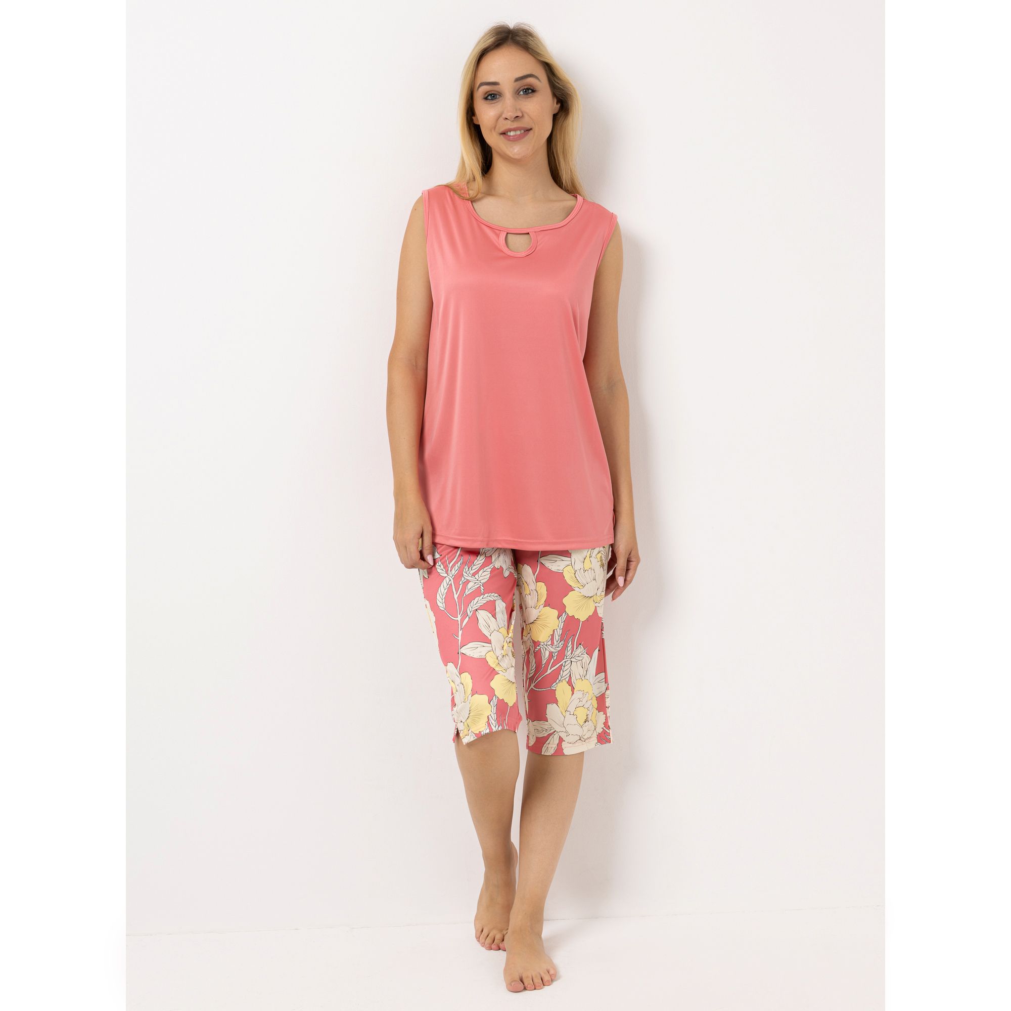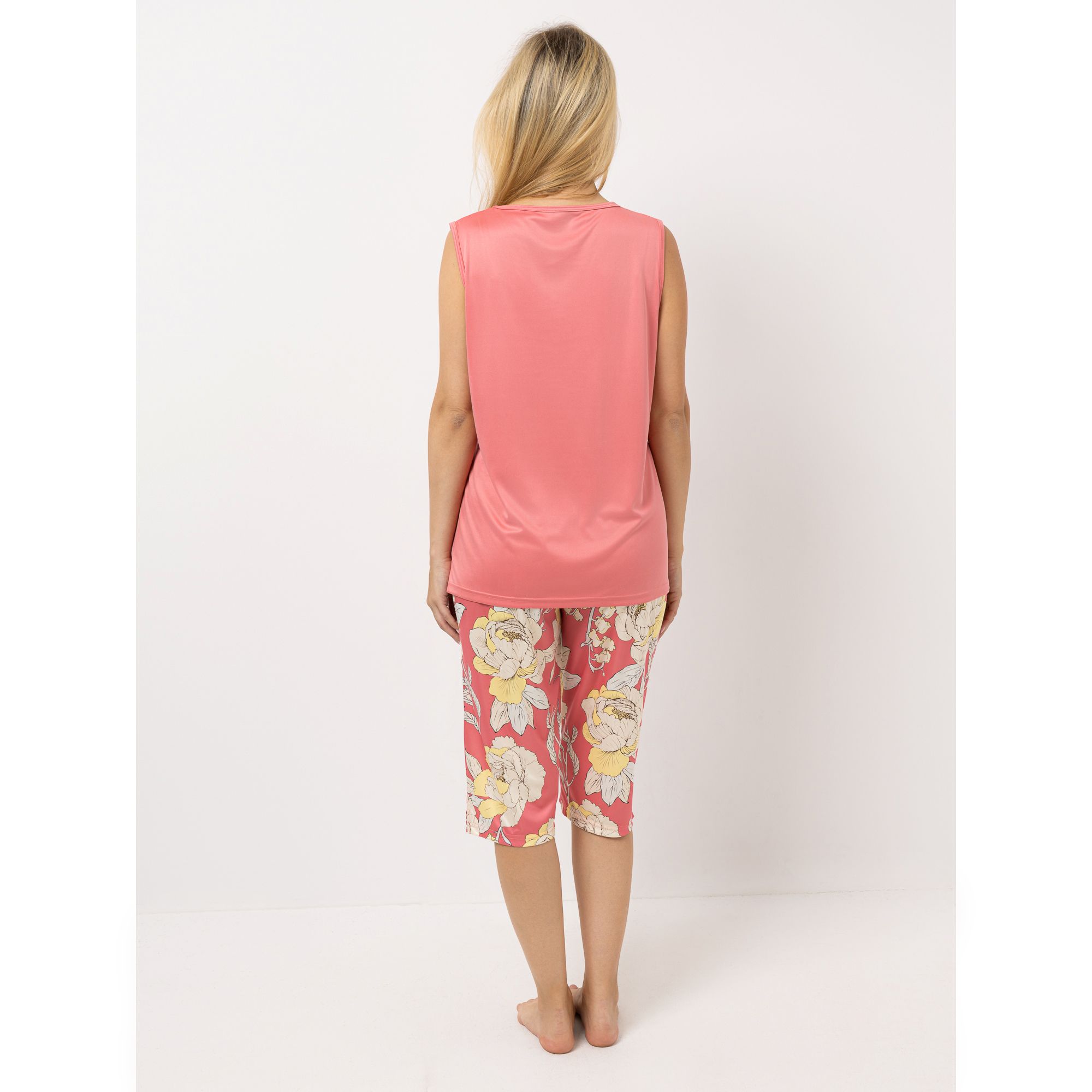 In sommerlichem Schnitt zeigt sich der LITTLE ROSE Pyjama: Zum ärmellosen Oberteil wird hier eine Hose in Capri-Länge kombiniert.