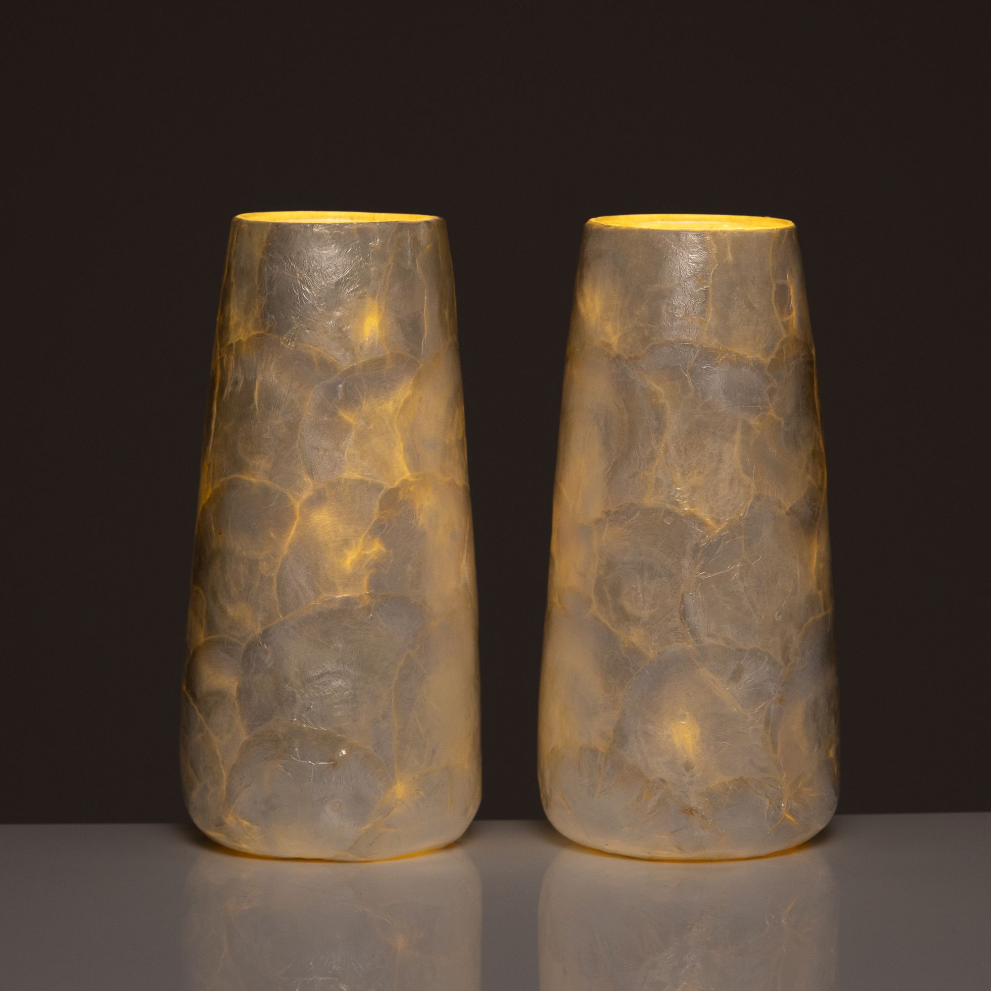LUMIDA Casa lässt mit diesen zwei Deko-Vasen den Zauber von Muscheln und sanftem Licht in dein Zuhause einziehen.