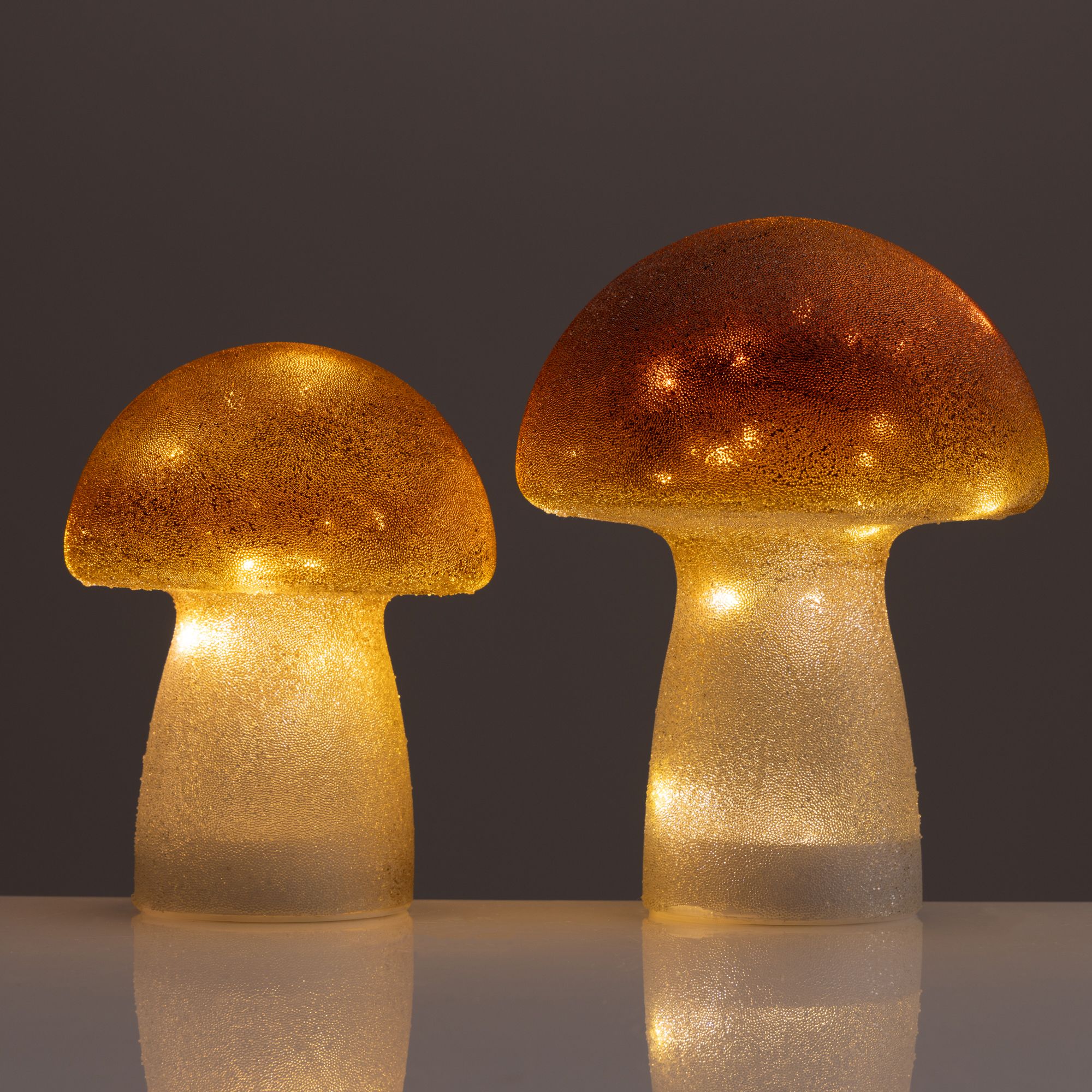 LUMIDA Casa 2 LED-Dekopilze Glas besandet 5h-Timerfunktion Höhe 17cm & 21cm