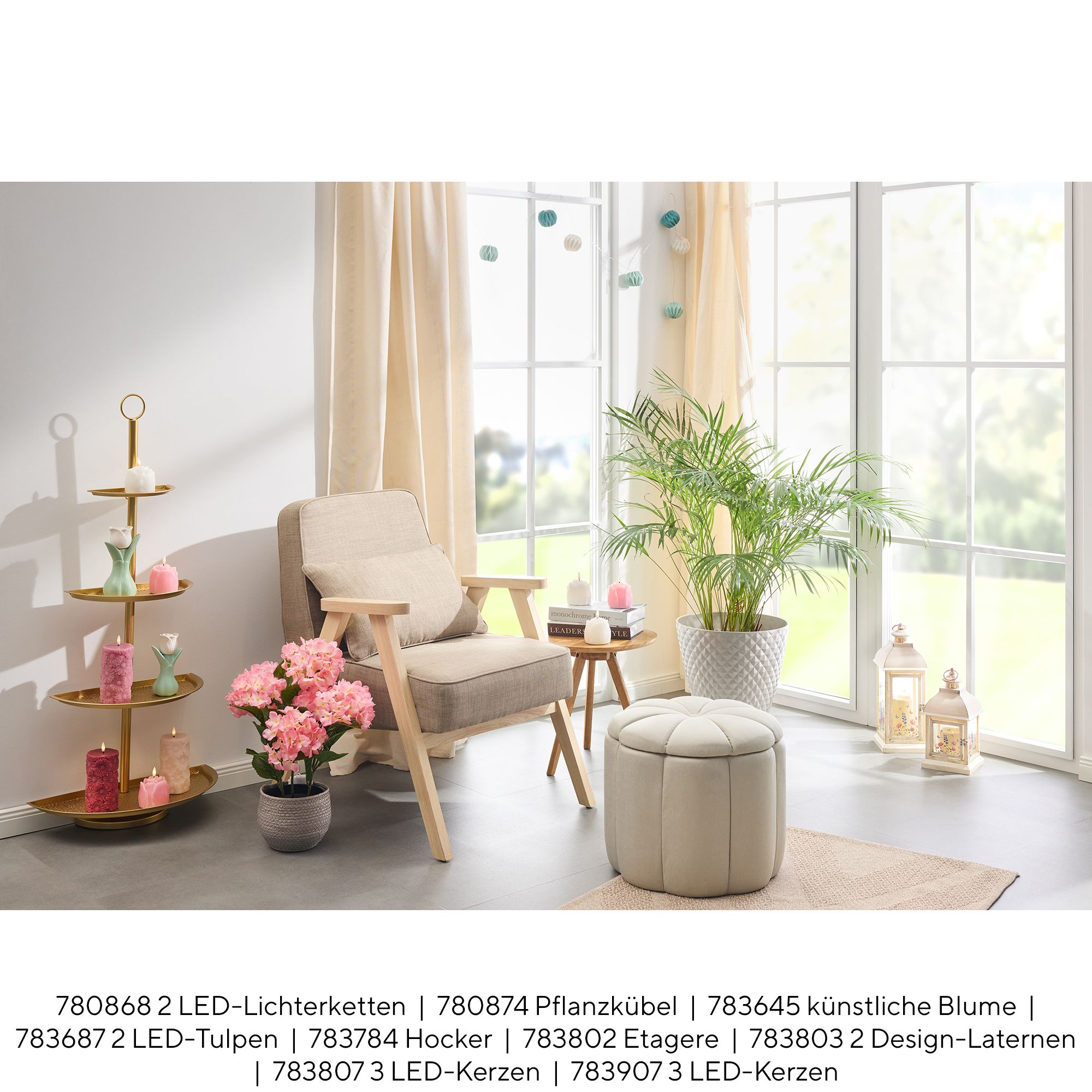 Blumen machen Freude, Gartenarbeit nicht immer. Deshalb ist die LUMIDA Pflanze ideal, denn sie verspricht mühelose Blütenfreude und ist völlig anspruchslos. Sie braucht nicht gegossen zu werden und blüht rund ums Jahr prächtig unabhängig von den Lichtverhältnissen oder vom Standort. Und wenn es dunkel wird, leuchten zwischen den vollen Blüten warmweiße LEDs. Einfach schön und romantisch.