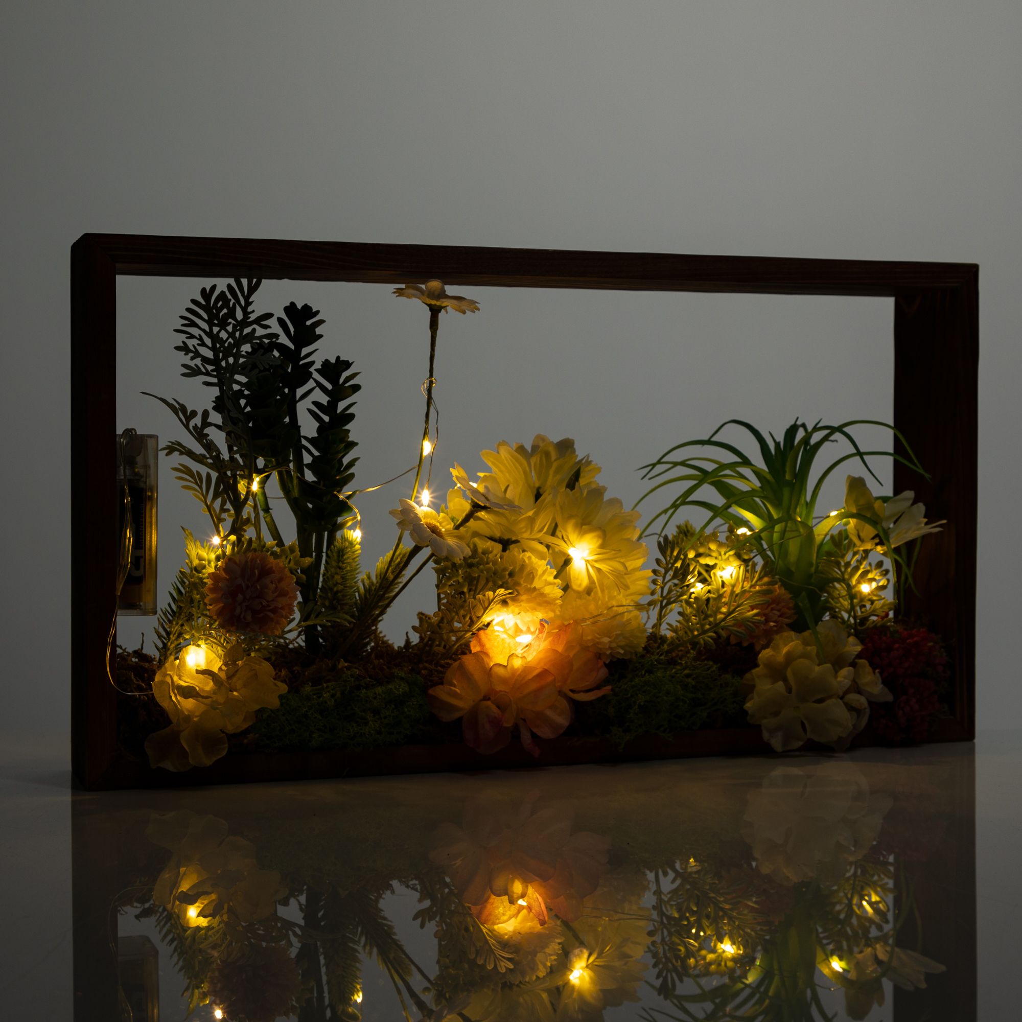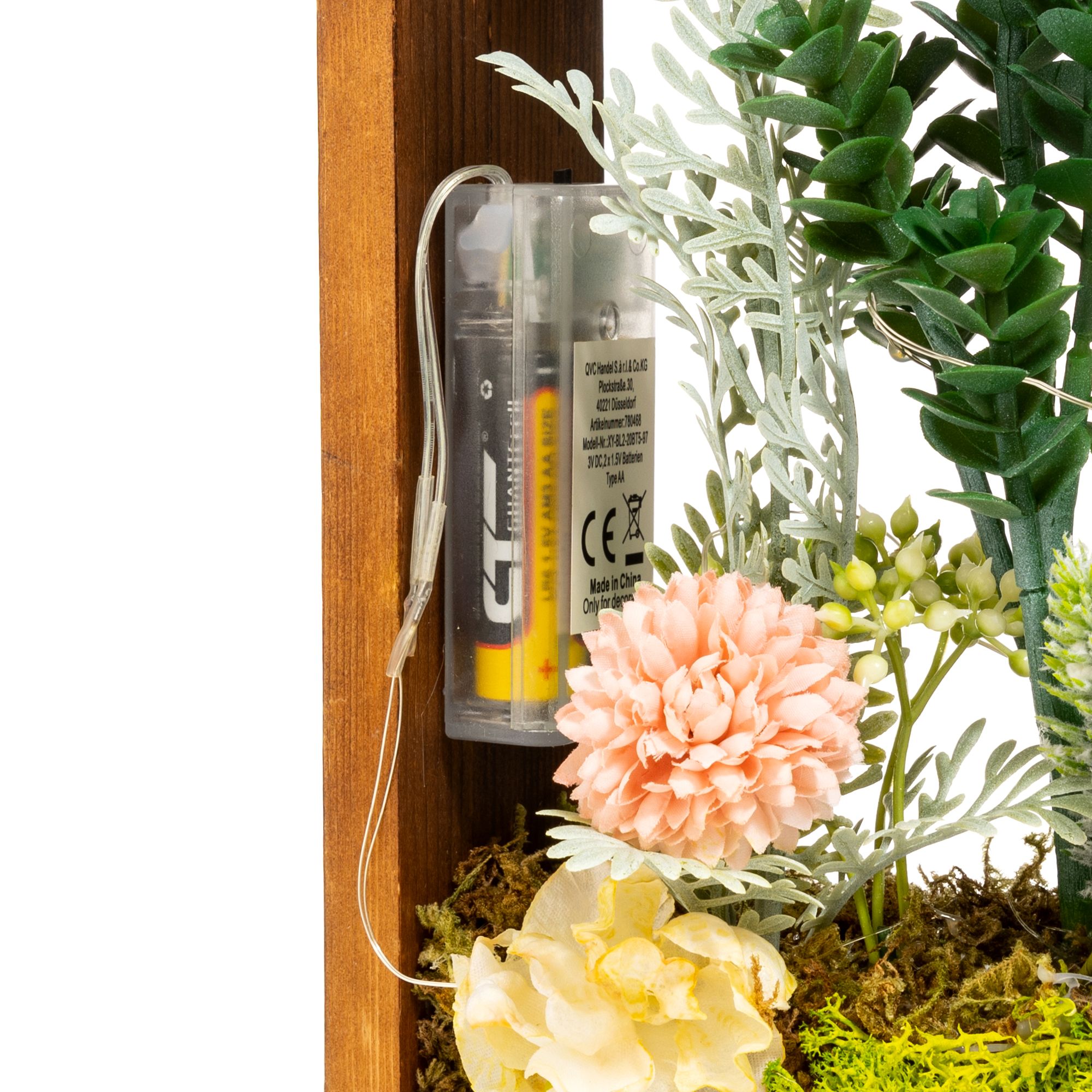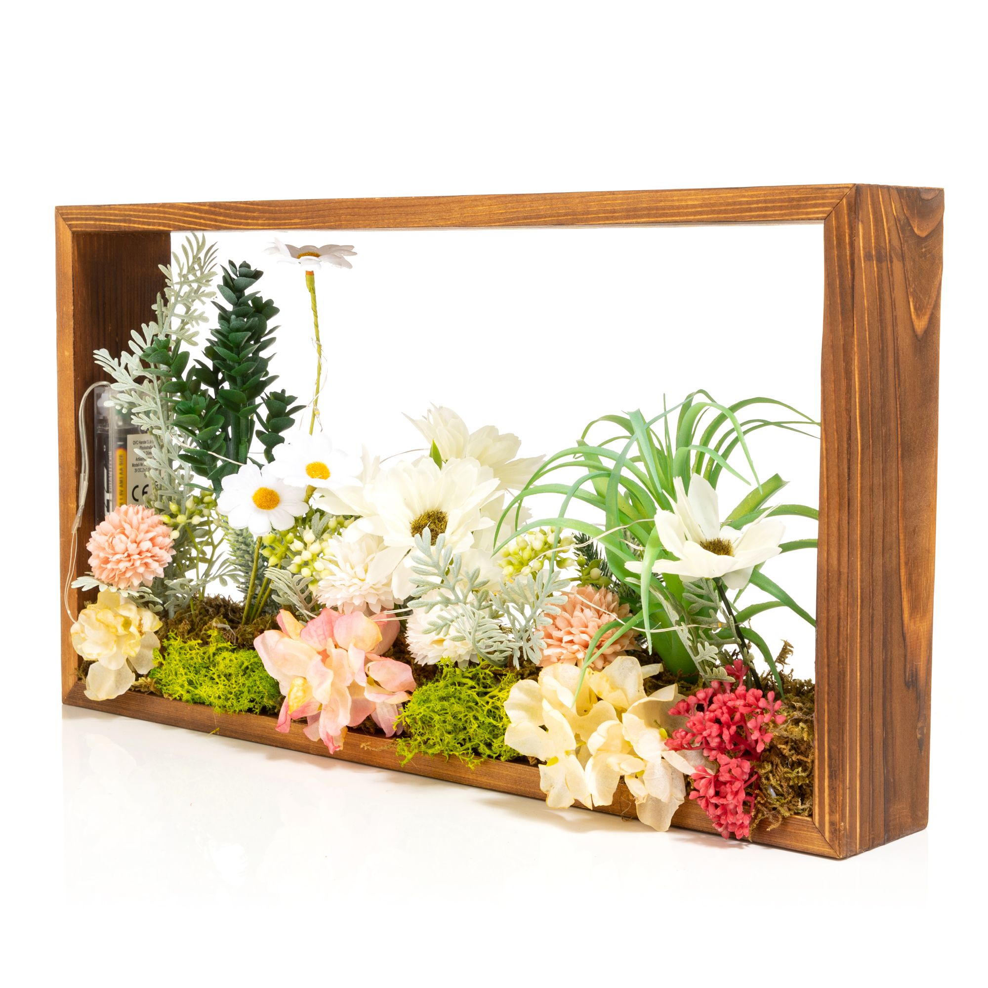 LUMIDA Flora künstl. Blumendeko im Holz-Rahmen inkl. 20 LEDs, Timer 42x23x6cm