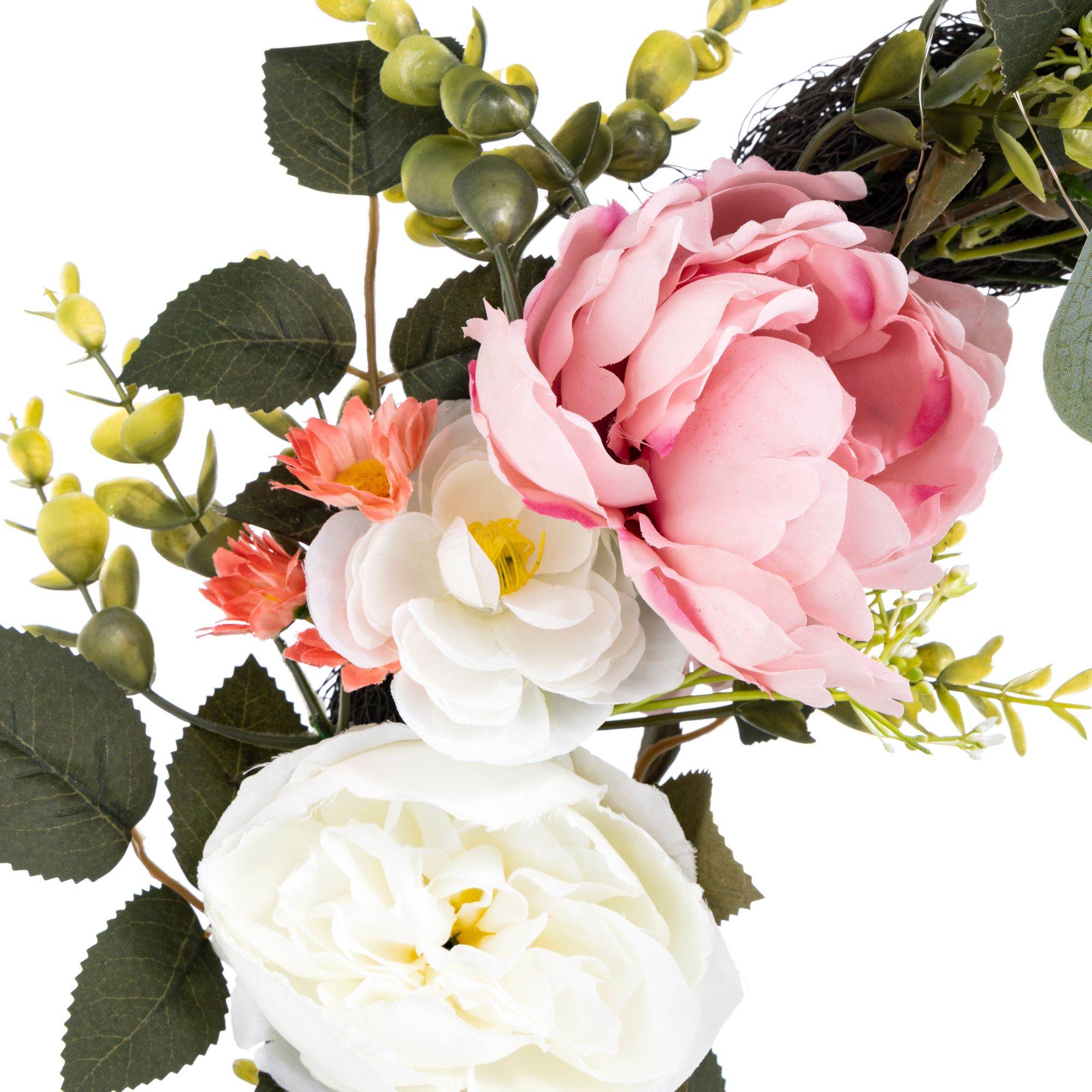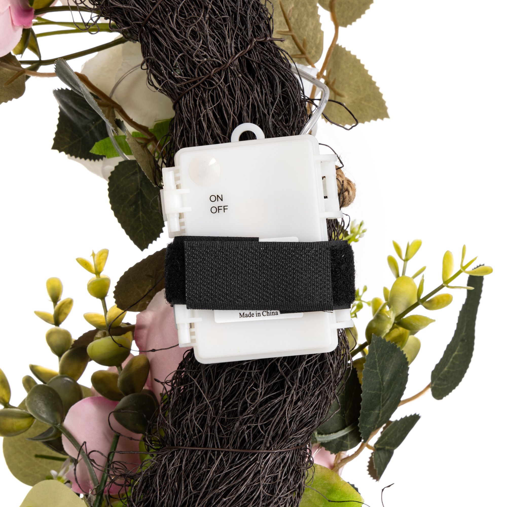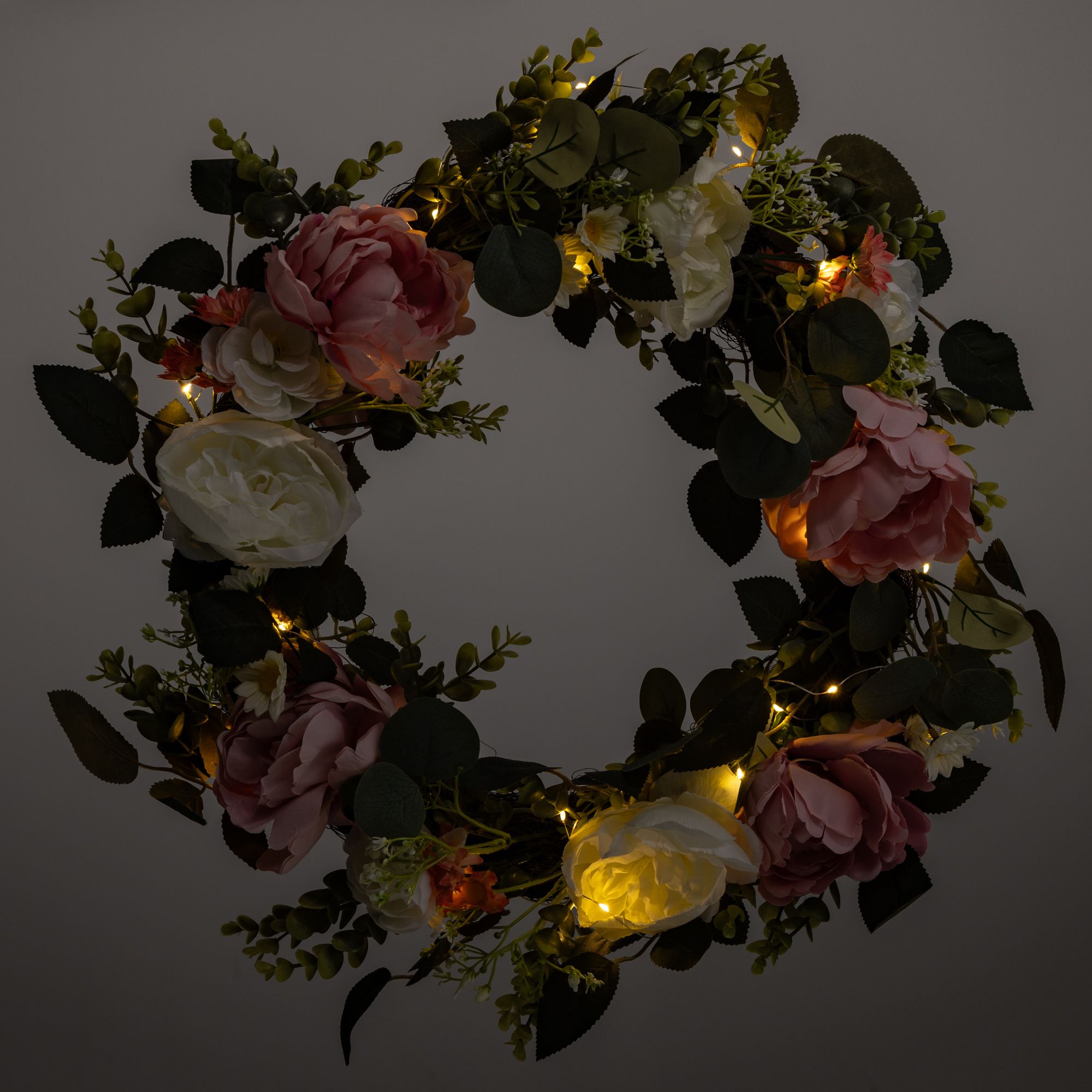 LUMIDA Flora künstl. Blumenkranz Pfingstrosen 5h-Timerufnktion Ø 55cm