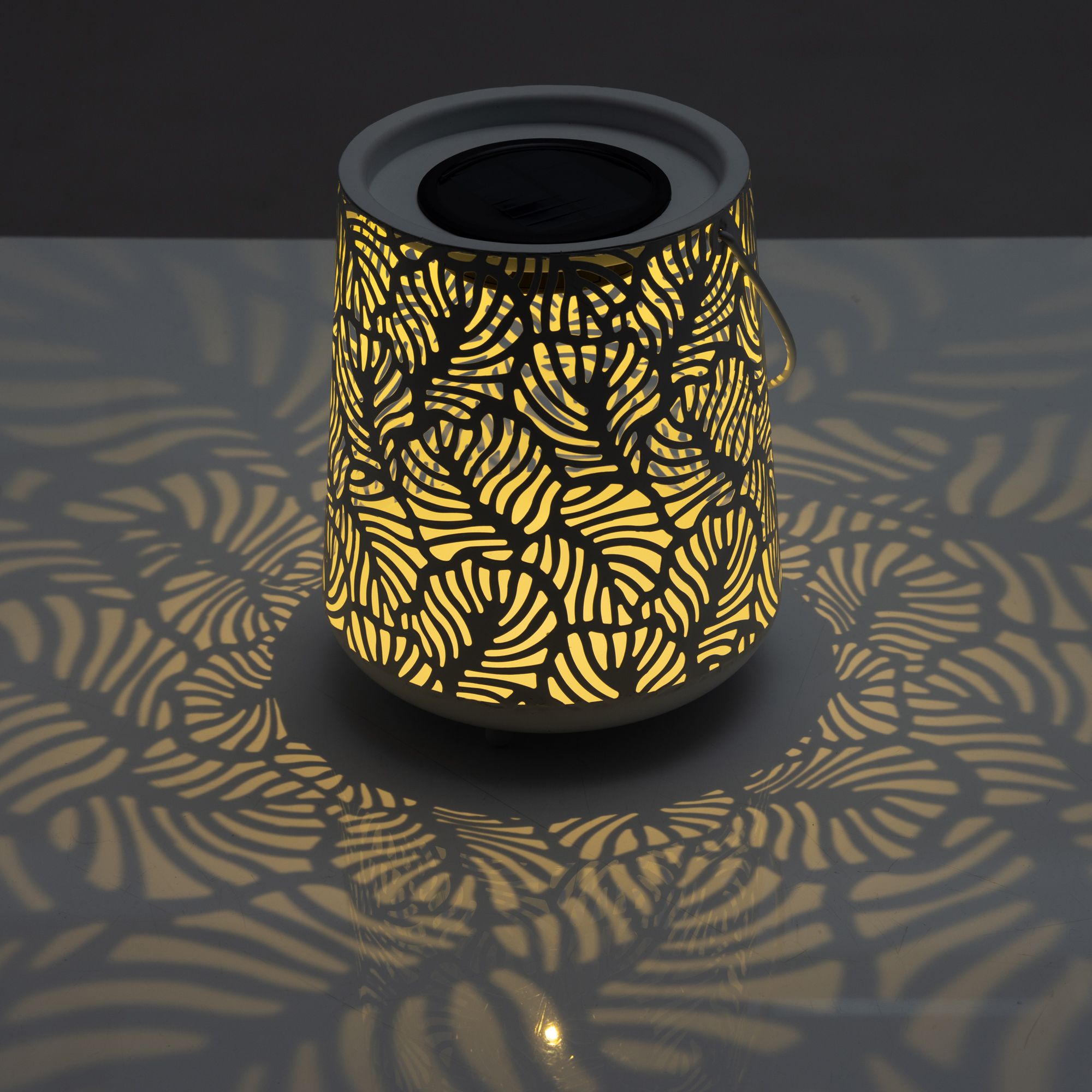 LUMIDA Garden verzaubert deinen Außenbereich mit einer kunstvoll gestalteten Solar-Laterne, deren blattförmige Cut-Outs faszinierende Lichtmuster auf Terrasse und Balkon zaubern.