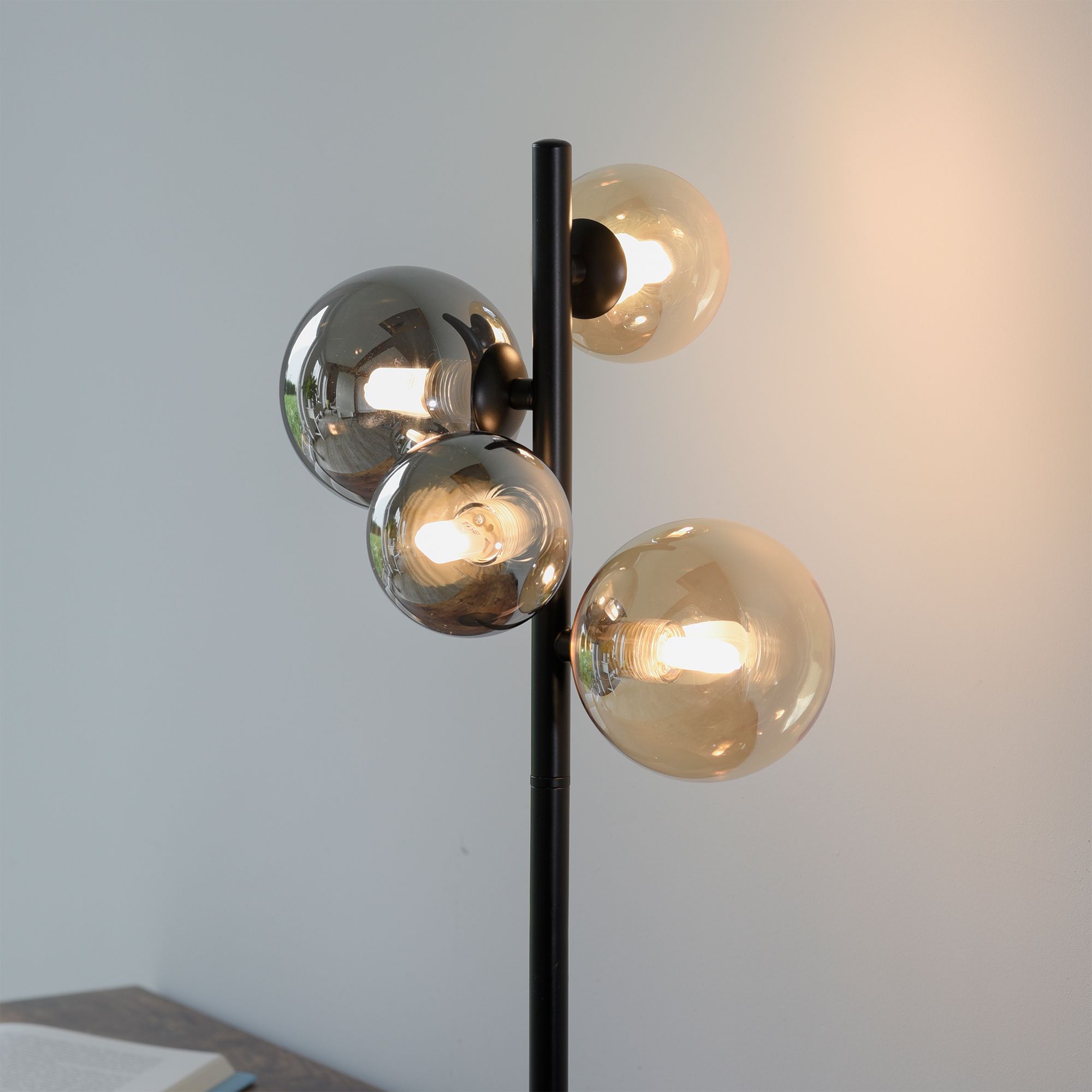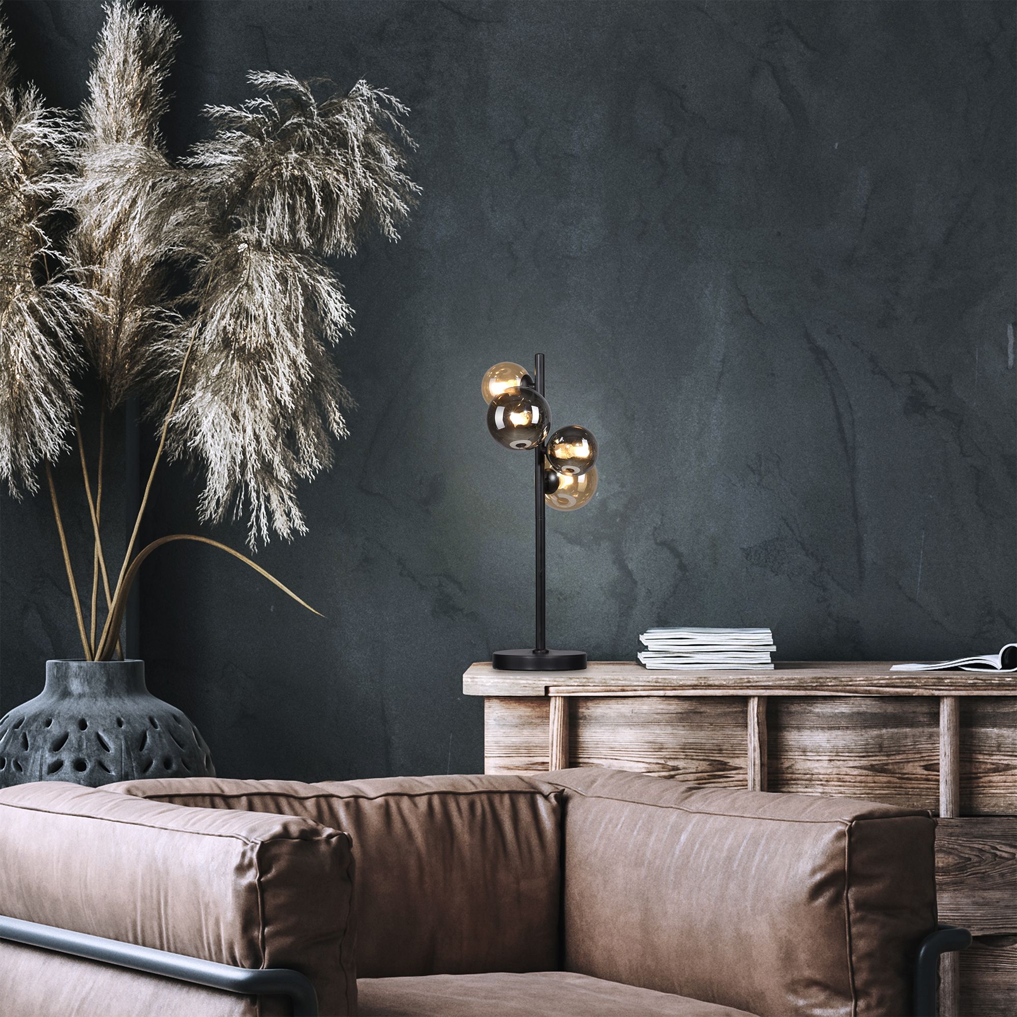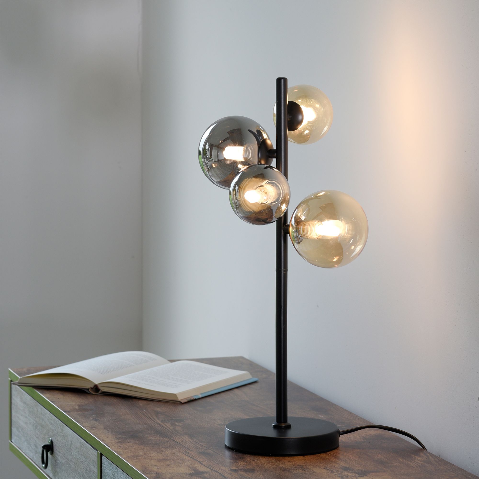 Die stilvolle Tischleuchte von LUMIDA Looks vereint modernes Design mit eleganter Lichtwirkung. Ihr formschöner schwarzer Korpus wird durch unterschiedlich große, matt weiße Opalgläser ergänzt, die ein faszinierendes Lichtspiel erzeugen. Dank der vier mitgelieferten G9-LED-Leuchtmittel in warmweißem Licht wird eine behagliche Atmosphäre geschaffen, die jeden Wohnraum in eine stilvolle Wohlfühloase verwandelt. Der praktische Schnurschalter ermöglicht eine einfache Bedienung.