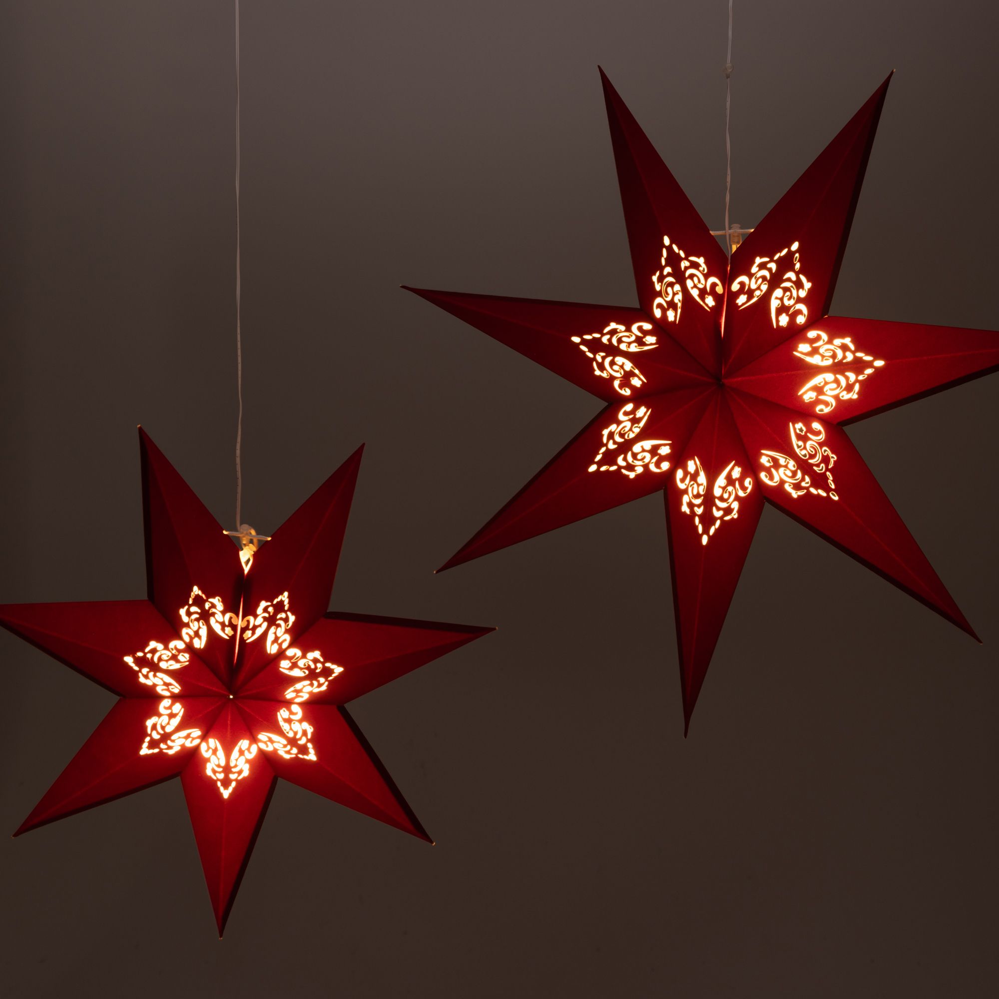Sternendeko darf in der Winterzeit auf keinen Fall fehlen! Die fein gearbeiteten LED-Papiersterne von LUMIDA Xmas machen sich wunderschön als träumerisches Highlight im Fenster, an der Wand oder frei aufgehängt.