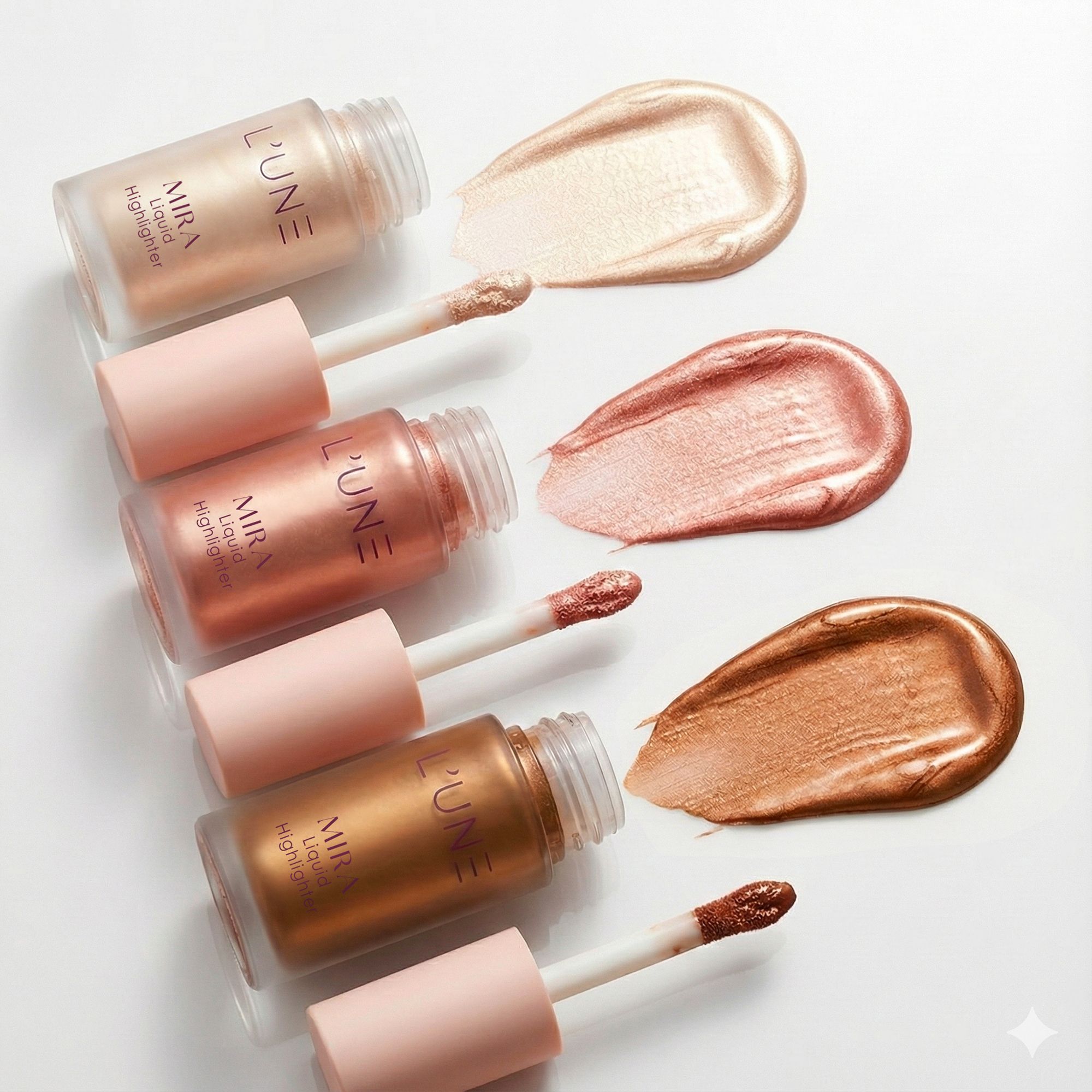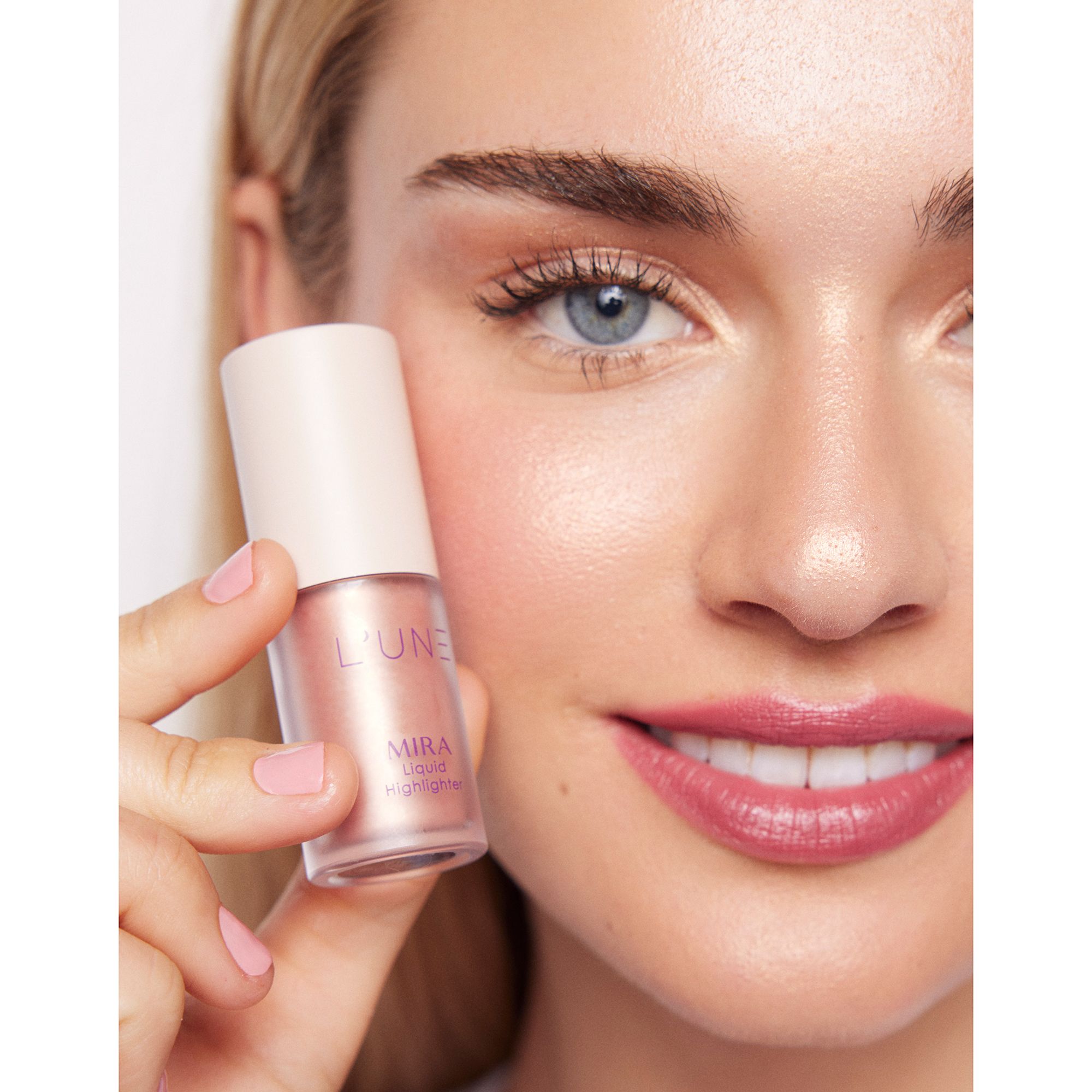 Weiche, zart duftende Haut & Lippen, reich gepflegt und verführerisch schimmernd: Mit dem Mira Liquid Highlighter von L'UNE voller luxuriöser Natur-Ingredenzien erreichst du genau das für deinen Look!
