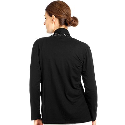 Edle Pailletten am Twinset. Das gut zu festlichen Anlässen tragbare M. ASAM Twinset in Jersey-Qualität besteht aus einem ärmellosen Top und einem Cardigan – jeweils besetzt mit chicen Glanz-Pailletten.