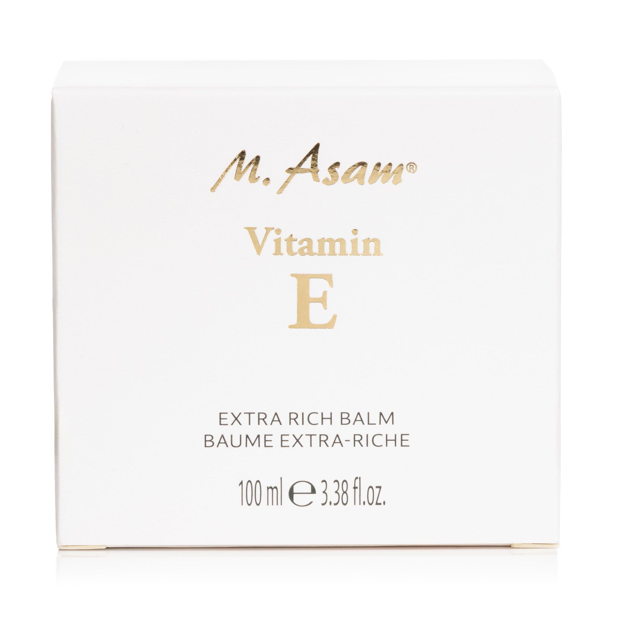 Mit dem besonders reichhaltigen Vitamin E Extra Rich Balm von M. ASAM® in Sondergröße erlebst du intensive Pflege, die trockene Hautstellen verwöhnt und deine Sinne mit einem zarten Aprikosenduft begleitet.