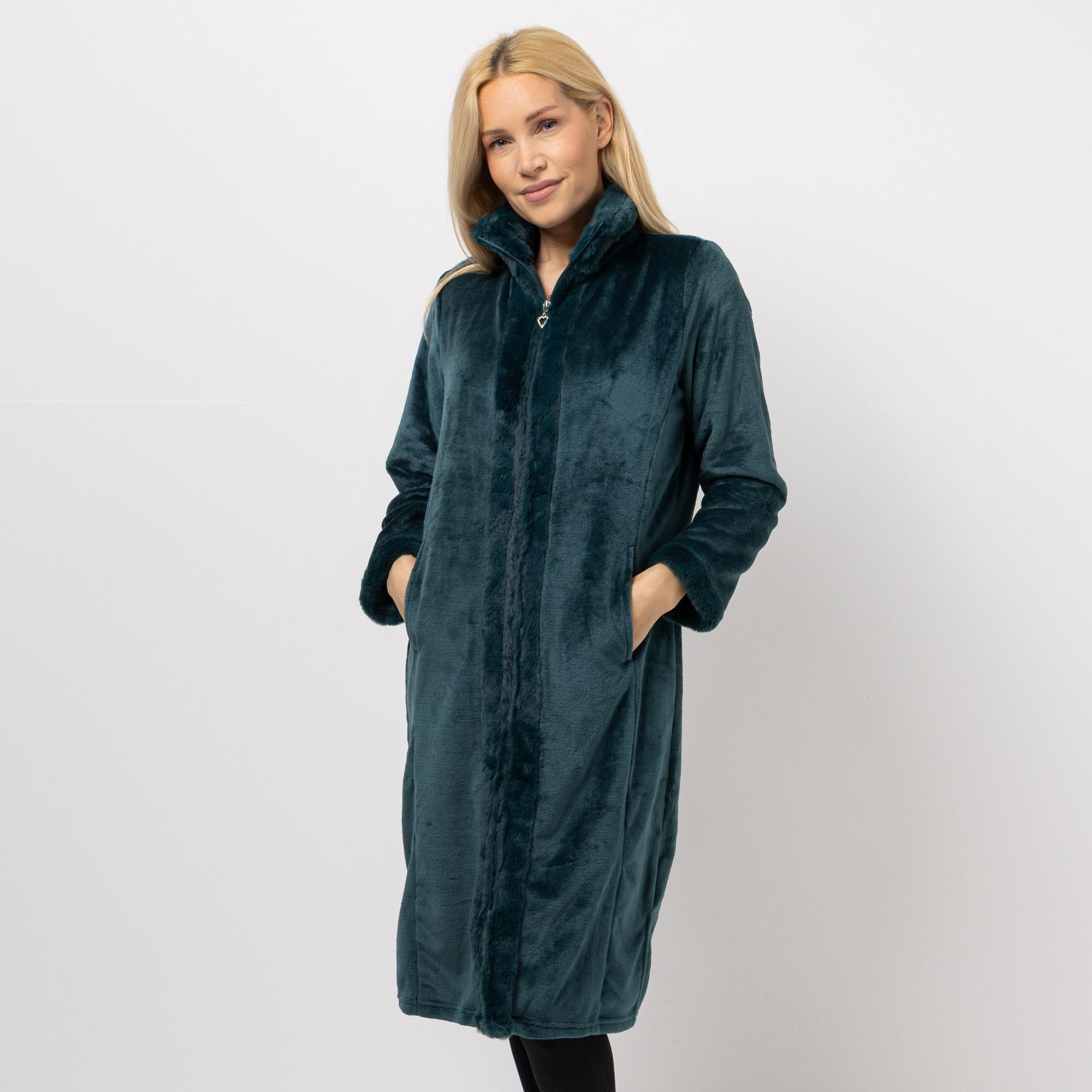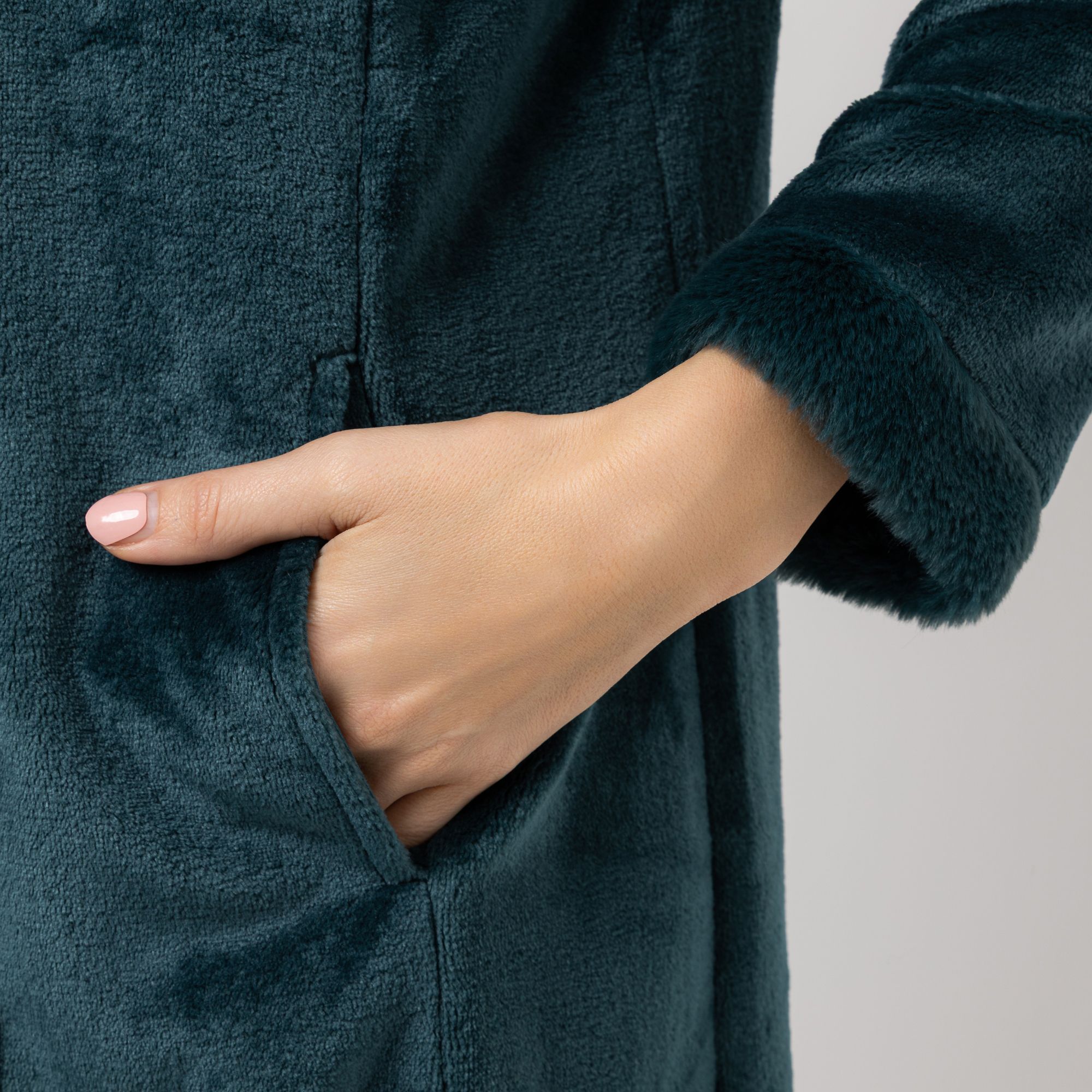 MONT CHALET Damen-Hauskleid Fellimitatbesatz Mikrofaser Chinchilla Stehkragen