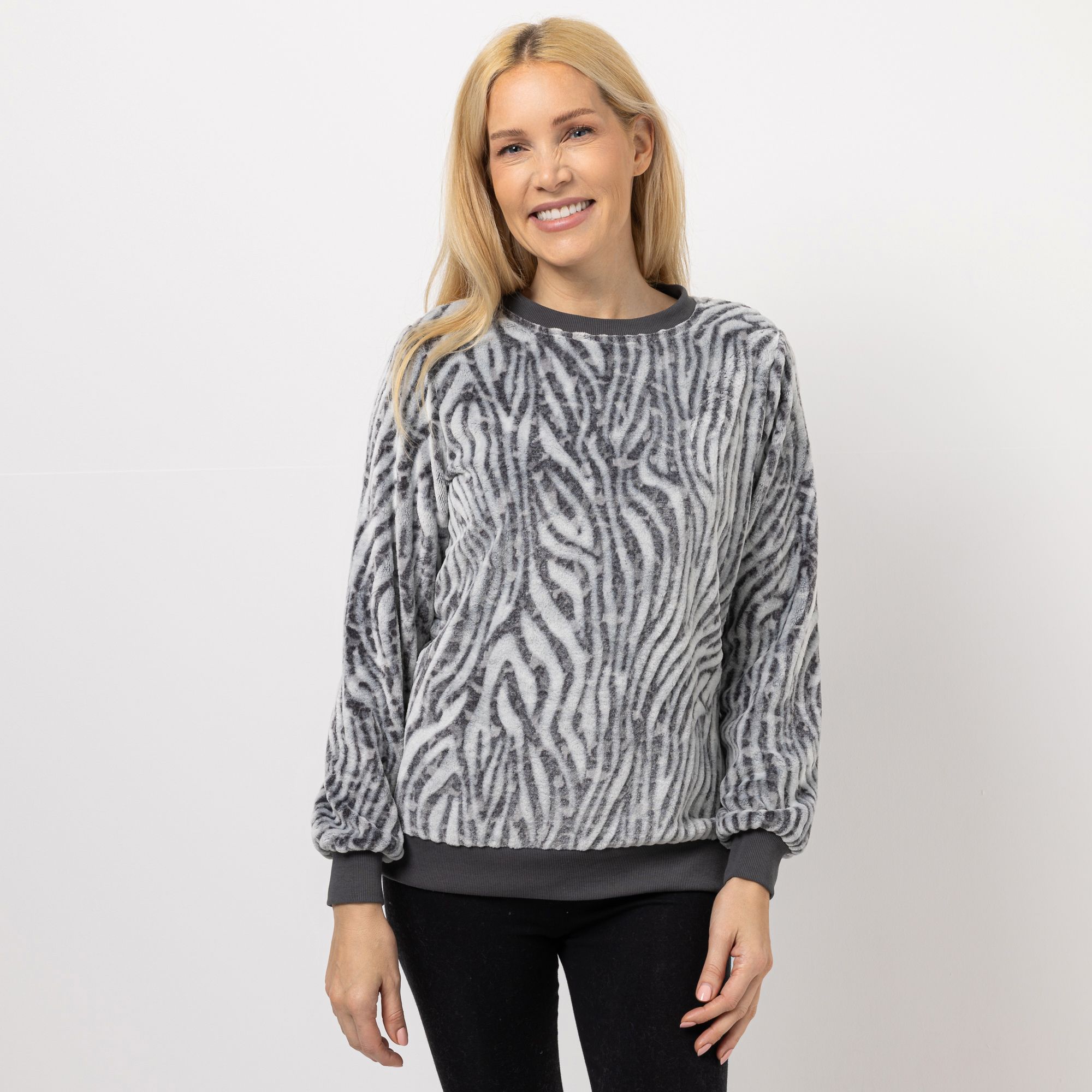 MONT CHALET Damen-Pullover 3D-Animaldesign Mikrofaser Chinchilla Rundhalsausschnitt