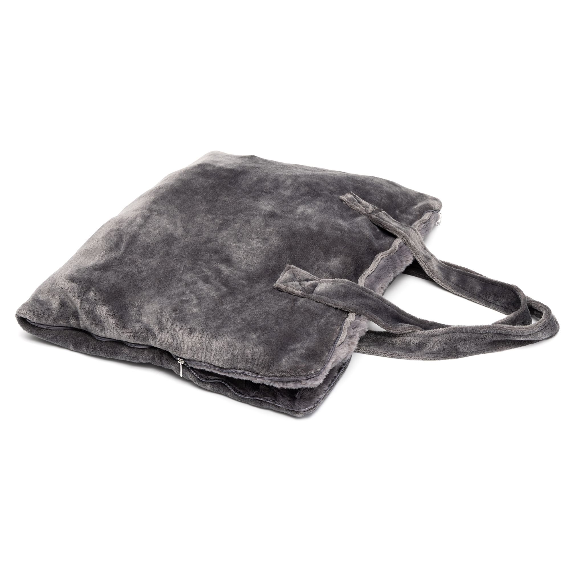 Das kuschelweiche Fell-Accessoire von MONT CHALET lässt sich von der Schlaf- und Schlummerdecke kinderleicht in eine tragbare Tasche verwandeln