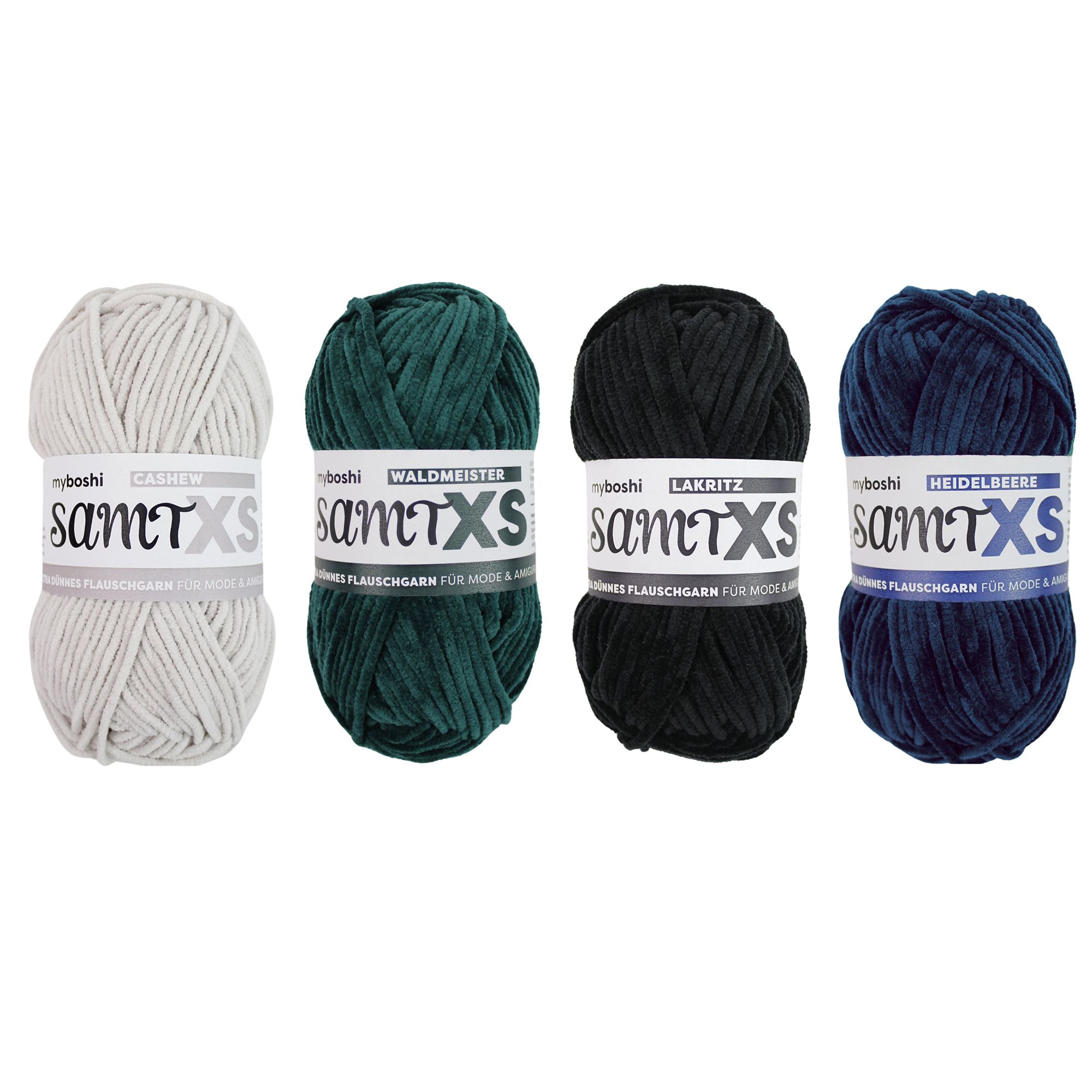 • 7 Knäuel Samt XS Wolle (4 x Cashew, 1 x Lakritz, 1 x Heidelbeere, 1 x Waldmeister), je 50 g