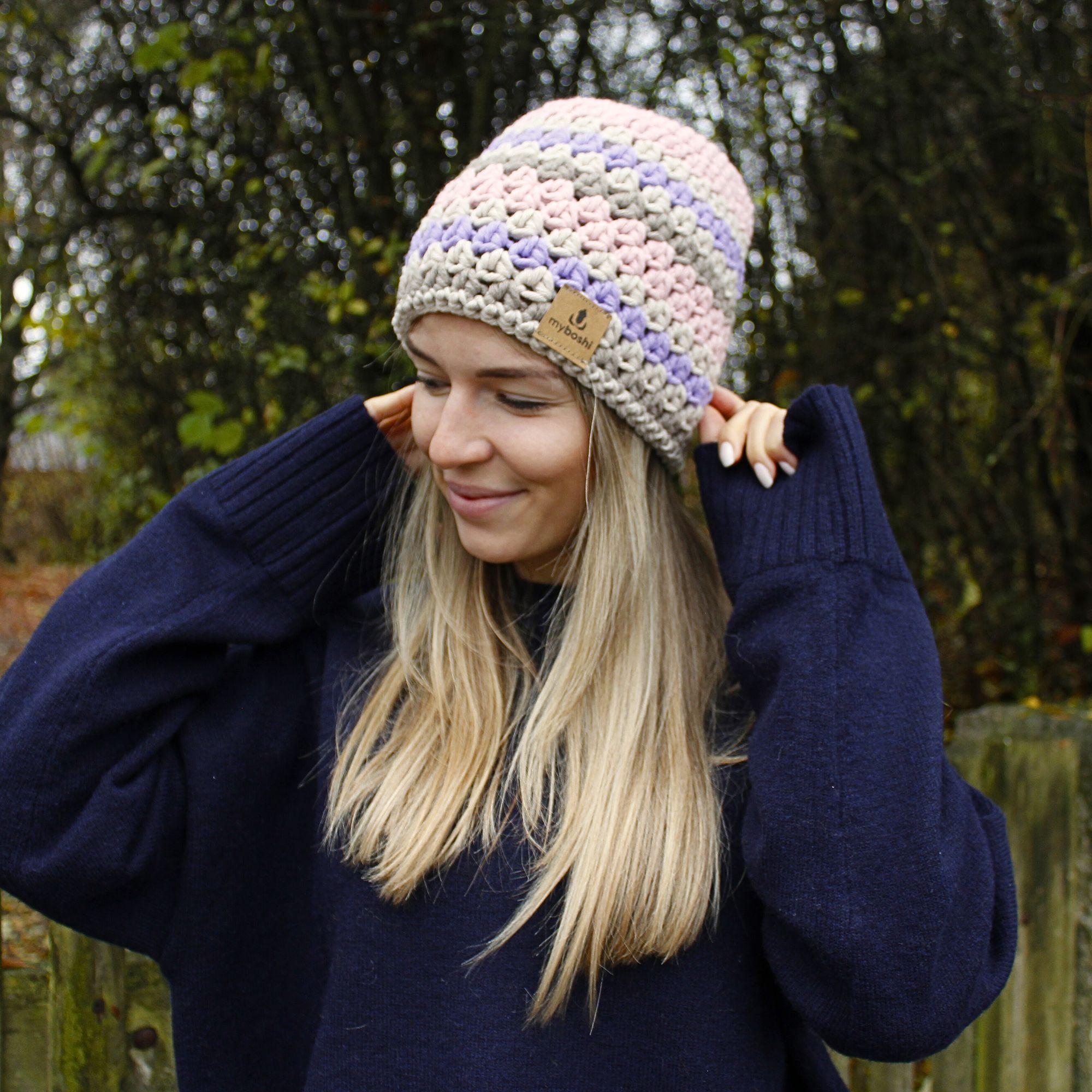- 4 Knäuel myboshi No.1 Wolle (Elfenbein, rose, schlamm, flieder)
