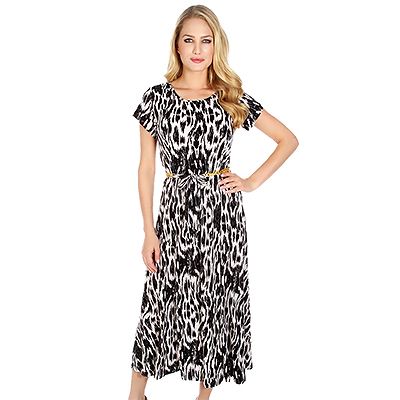 NINA LEONARD Kleid, 1/2-Arm Rundhalsausschnitt Kettengürtel allover Druck