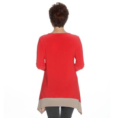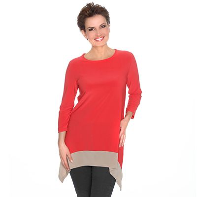 NINA LEONARD Shirt, 3/4-Arm Rundhalsausschnitt Kontrastblende Zipfelsaum