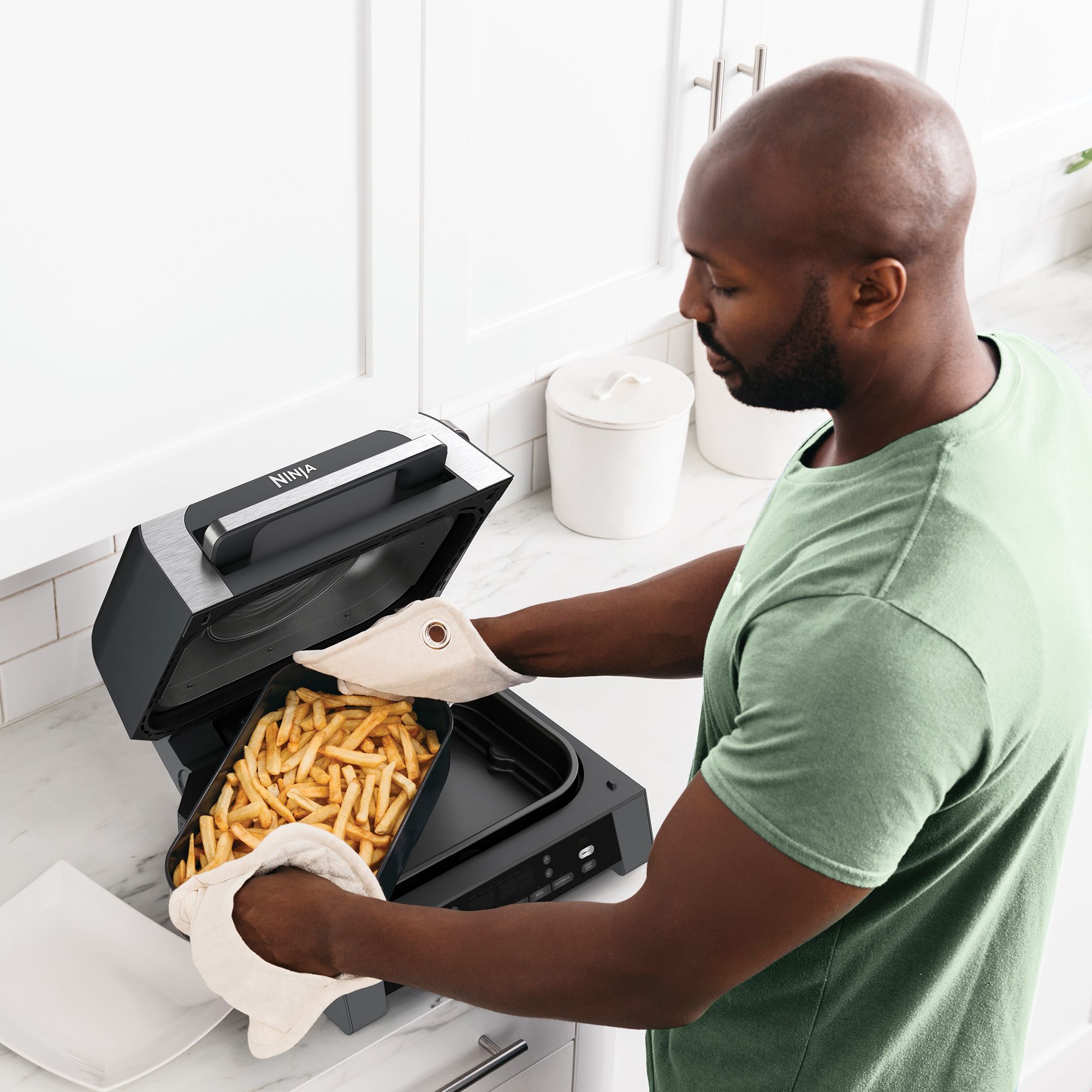 Authentische Grillaromen ohne viel Rauch oder Wendemanöver: Die NINJA® 6in1 Max Heißluftfritteuse mit Grillfunktion überzeugt mit vielseitigen Kochfunktionen und innovativem Smart-Cook-System. Ob saftiger Braten, knusprige Burger oder aromatisches Gemüse: Der großzügige 3,8-Liter-Kochtopf bietet ausreichend Platz für bis zu sechs Portionen und die XL-Grillplatte lässt keine Wünsche offen. Mit dem digitalen Bratenthermometer hast du den Garprozess immer im Blick und genießt perfekt zubereitete Speisen – von zart bis durchgebraten.