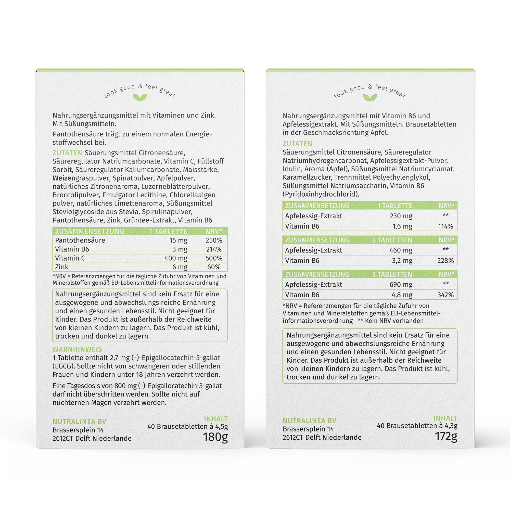 Jetzt kann losgesprudelt werden: NutraLinea® Set aus Supergreens + Apple Vinegar mit Apfelgeschmack
