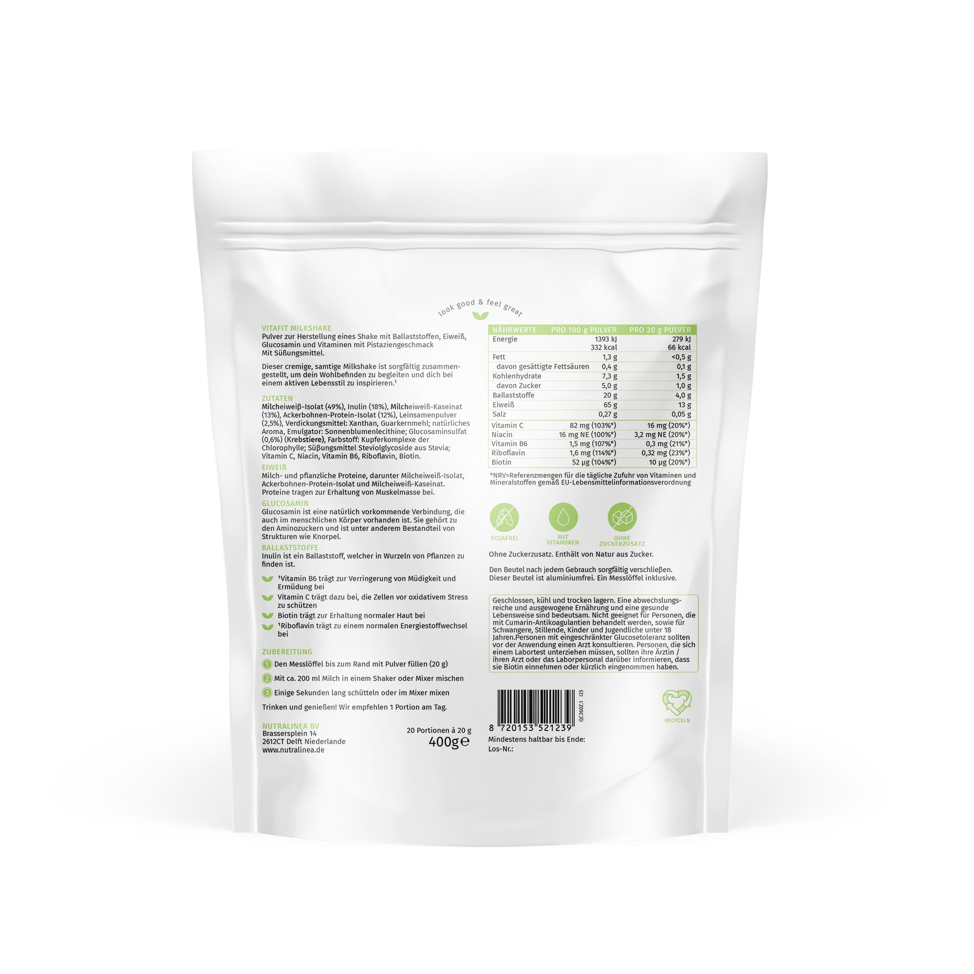 - VitaFit Milchshake, 20 Portionen (400 g)