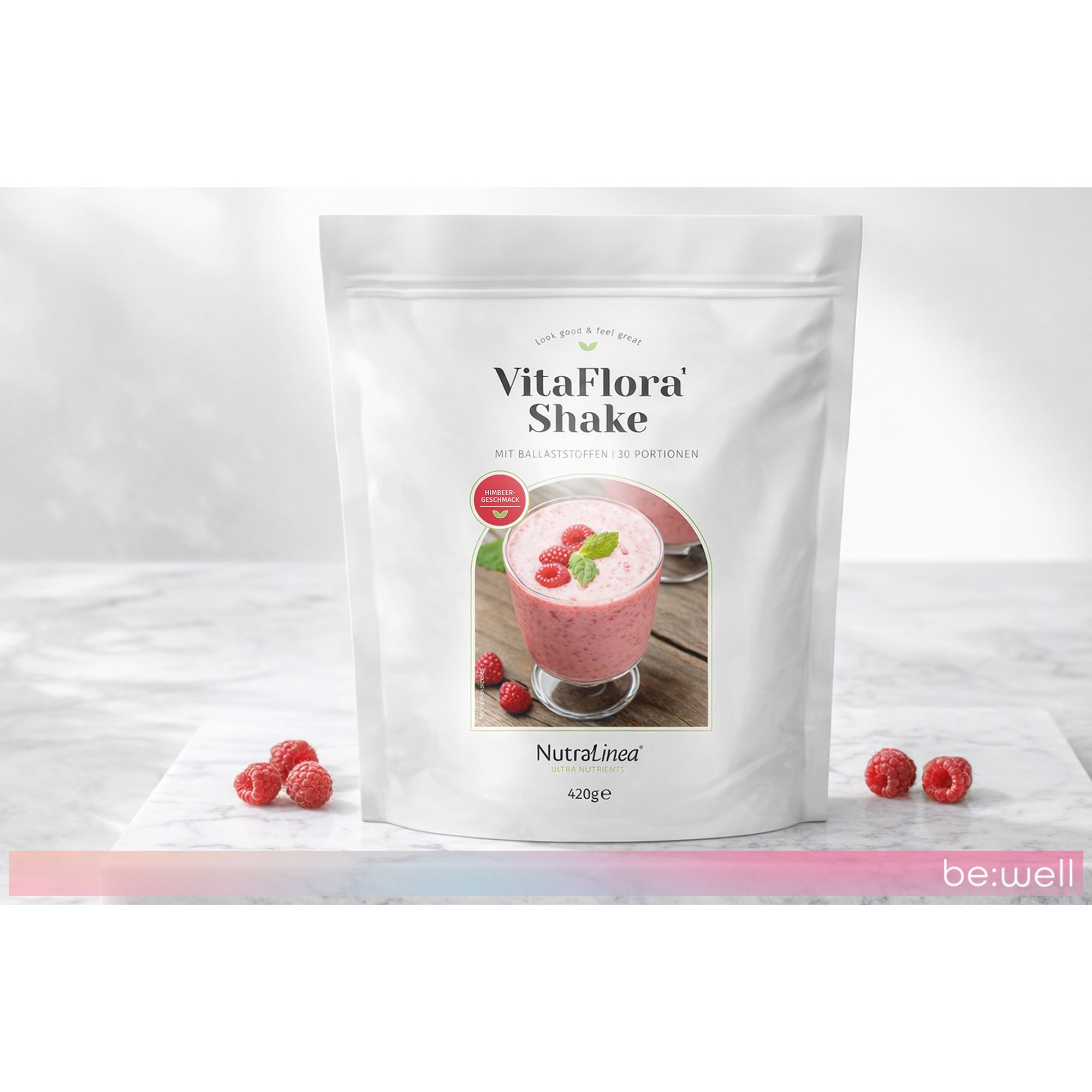Ein wahrer Allrounder für die Darmbalance: NutraLinea® VitaFlora Shake mit Ballaststoff-Mix aus Hafer, Inulin und Leinsamen, Eiweiß, L-Glutamin, Vitamin B2 und fruchtigem Himbeergeschmack. Sanft, ballaststoffreich, pflanzlich - für ein ausgewogenes Körpergefühl.