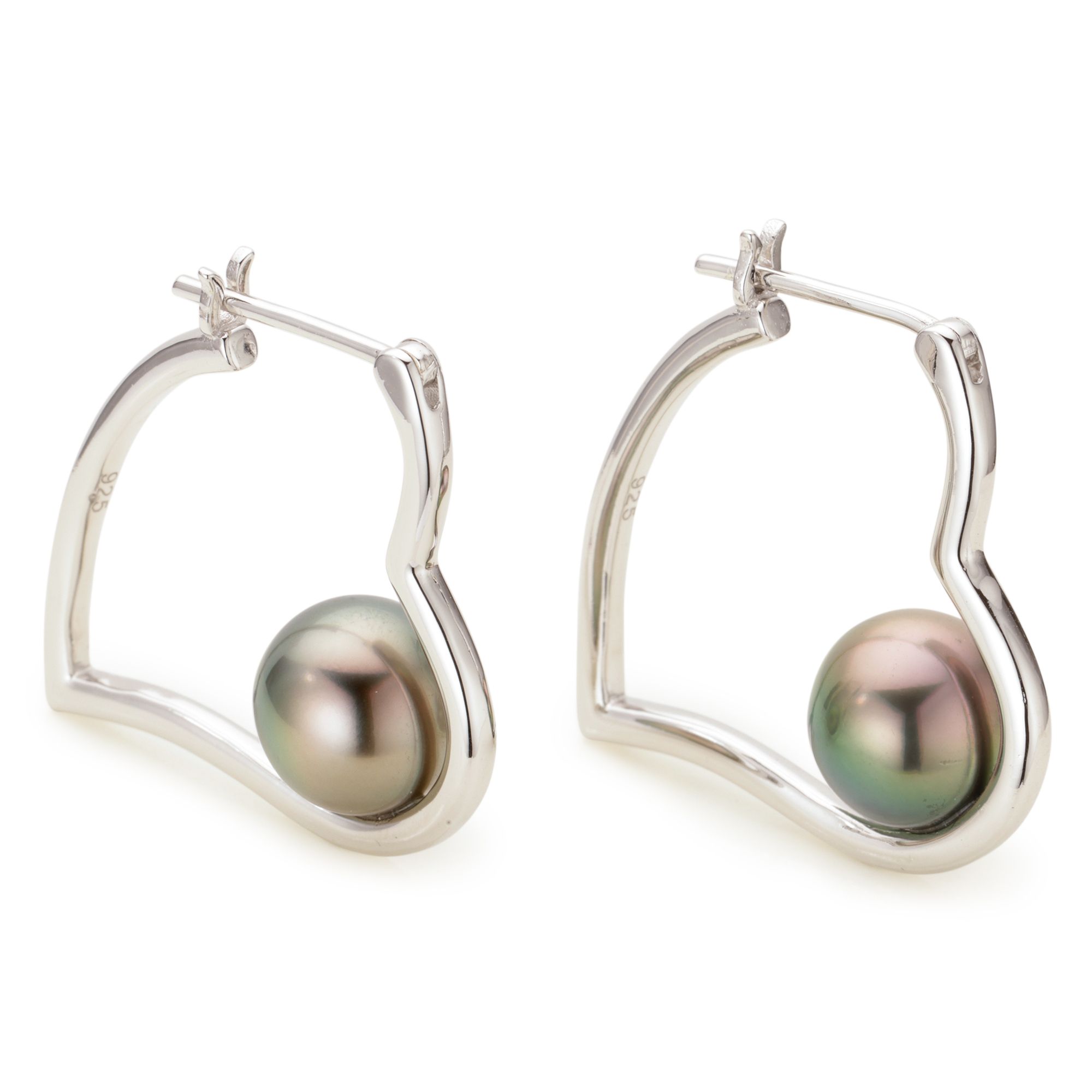 PERLEA Herz-Creolen Tahitizuchtperlen ca. 8-9mm Silber rhodiniert