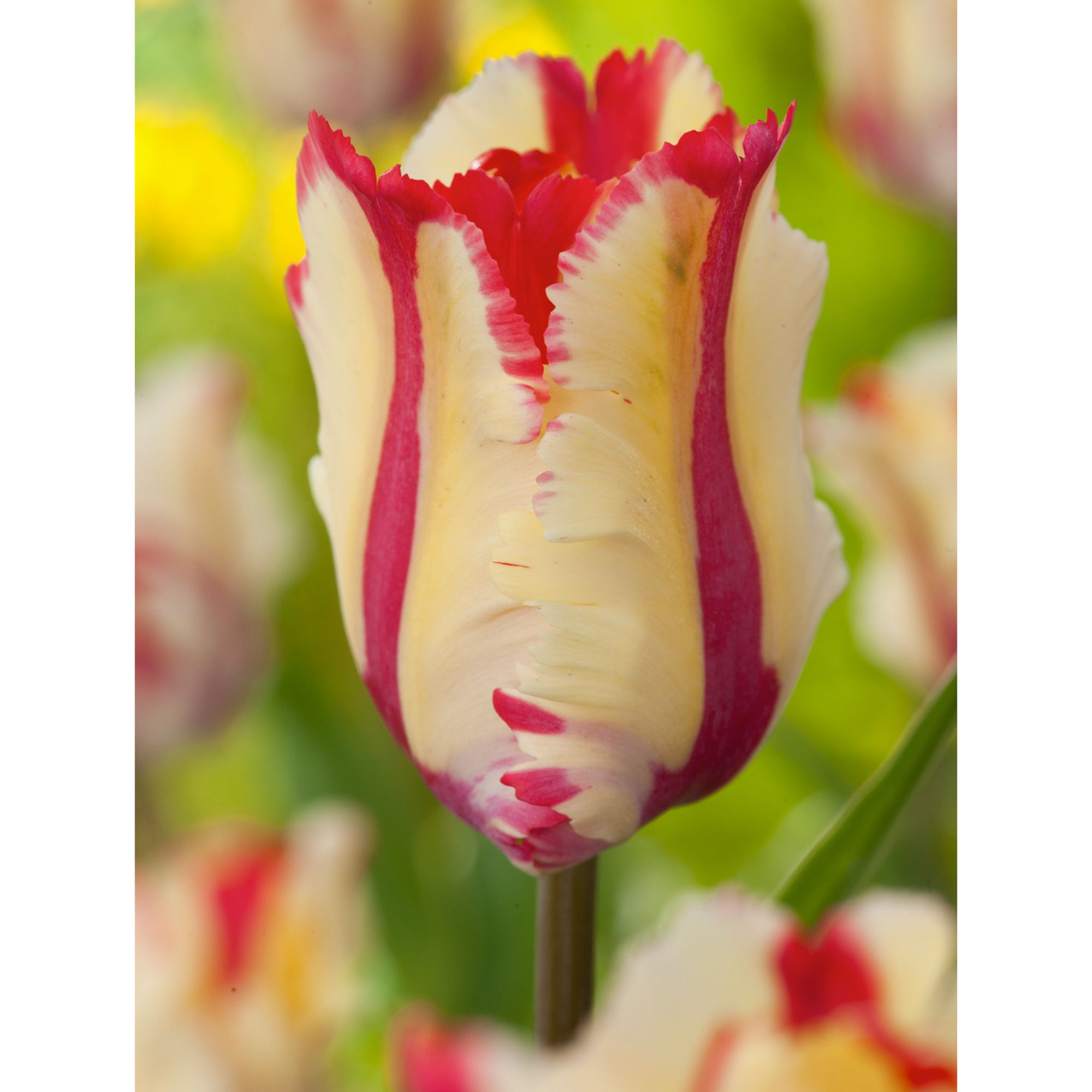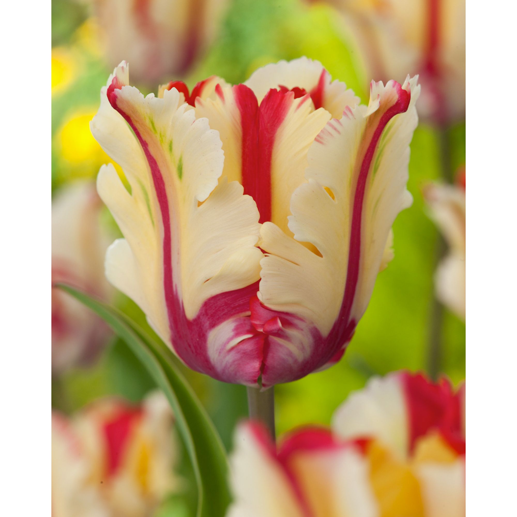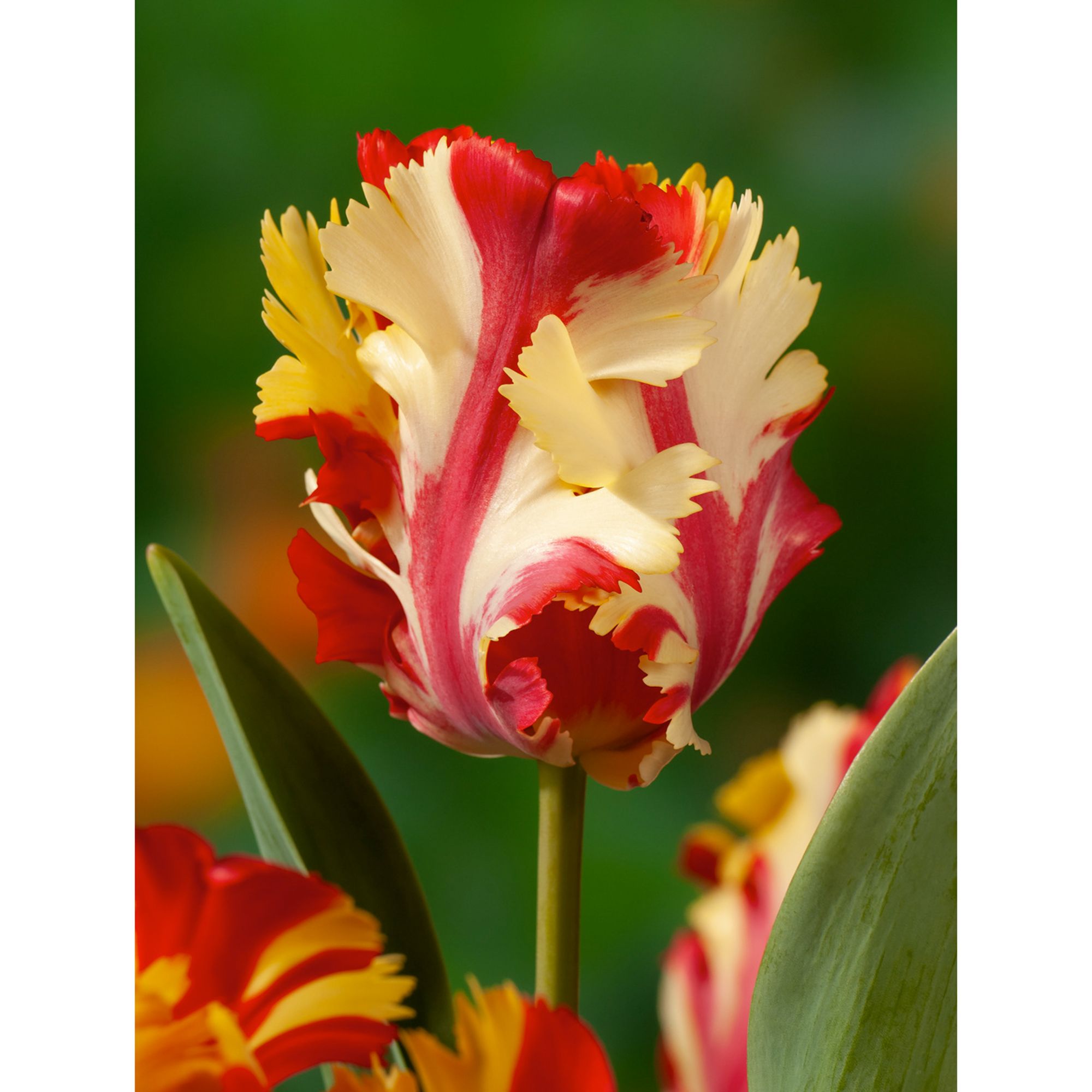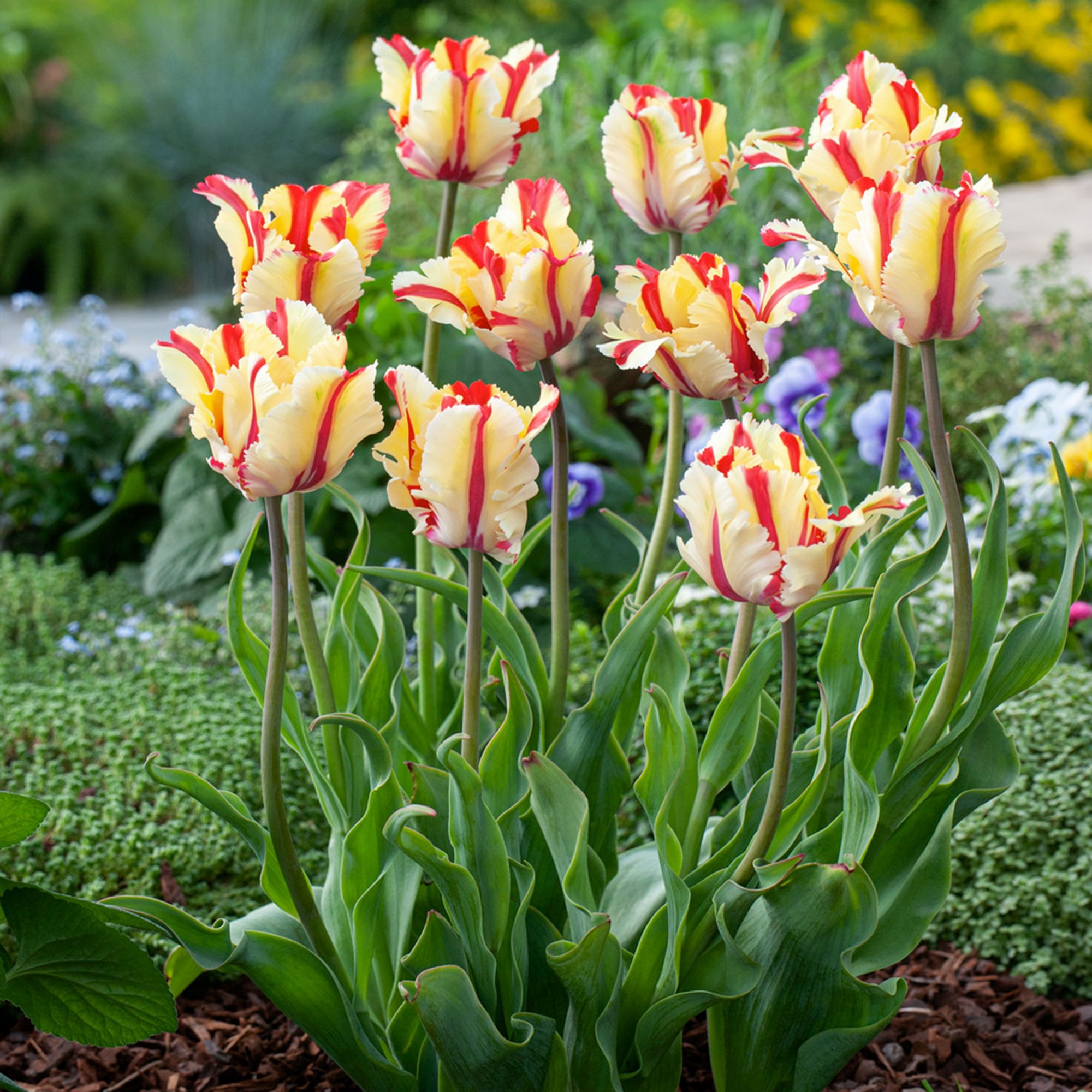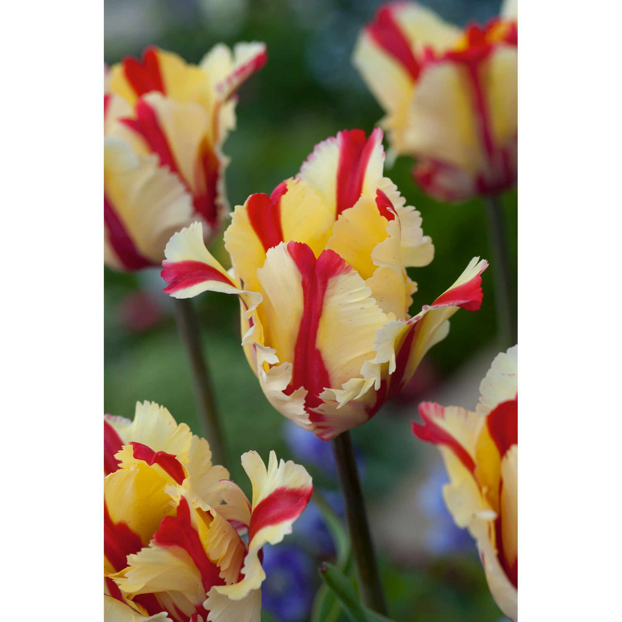 Die kontrastreichen Farbnuancen der Papageientulpen Flaming Parrot von PFLANZENFREUND machen jede Blüte zu einem wahren Kunstwerk. Die Farben reichen von Gelb über Orange bis hin zu Rot, mit Streifen und Flammen.
