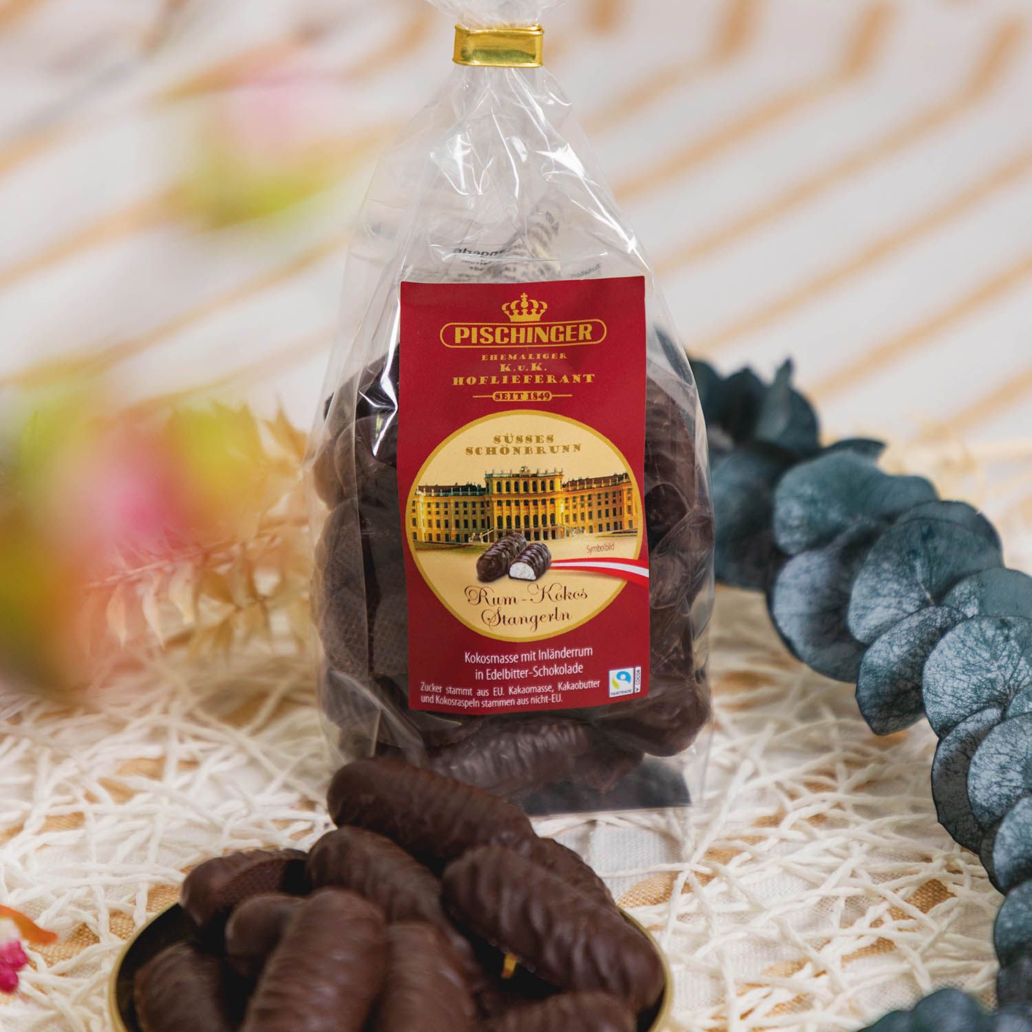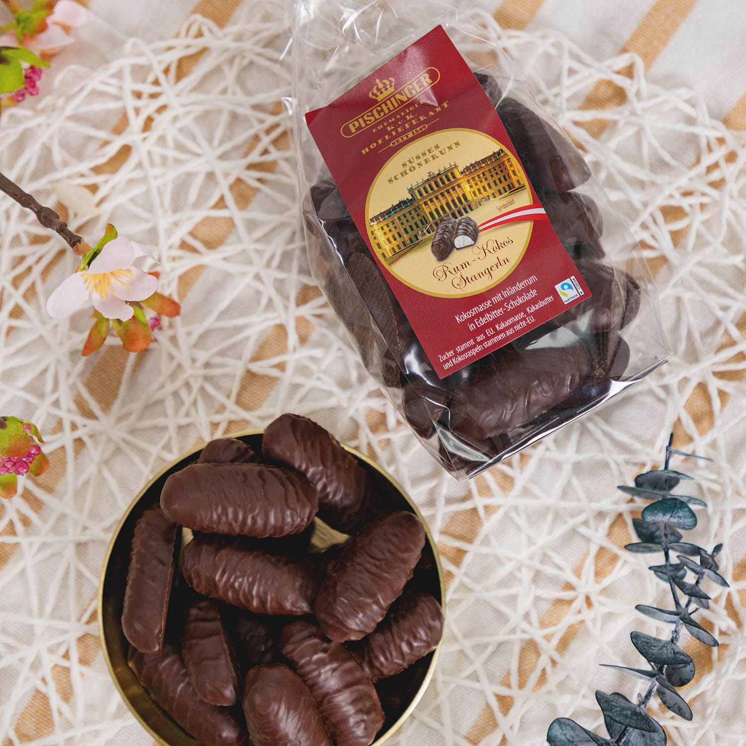Genussmomente mit PISCHINGER, die dich mit Kokos, feinem Inländerrum und Edelbitterschokolade auf eine exotische Reise entführen