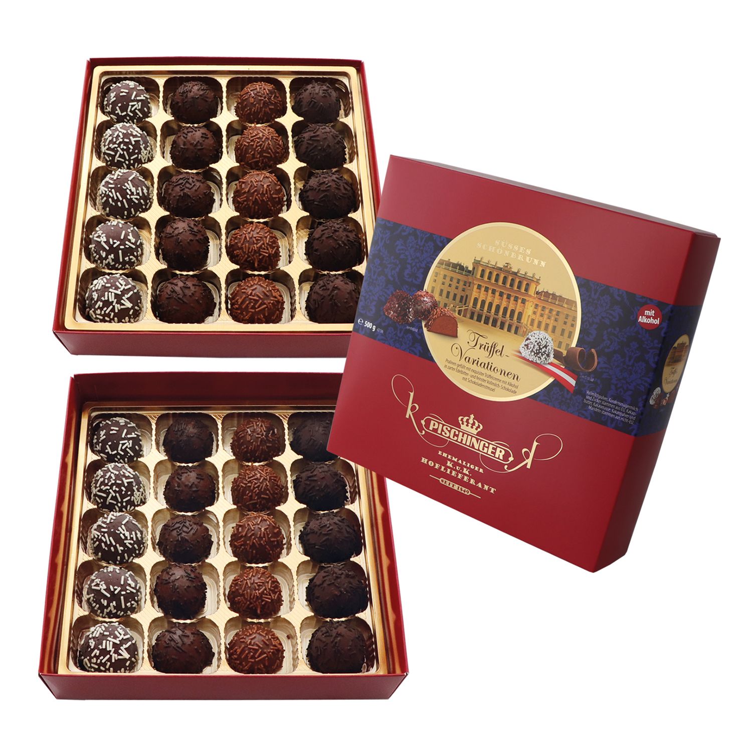 PISCHINGER präsentiert eine genussvolle Komposition aus 4 verschiedenen Sorten Trüffelpralinen umhüllt von feinster Vollmilch- oder zarter Edelbitter-Schokolade - perfekt um dich oder deine Liebsten zu beschenken.