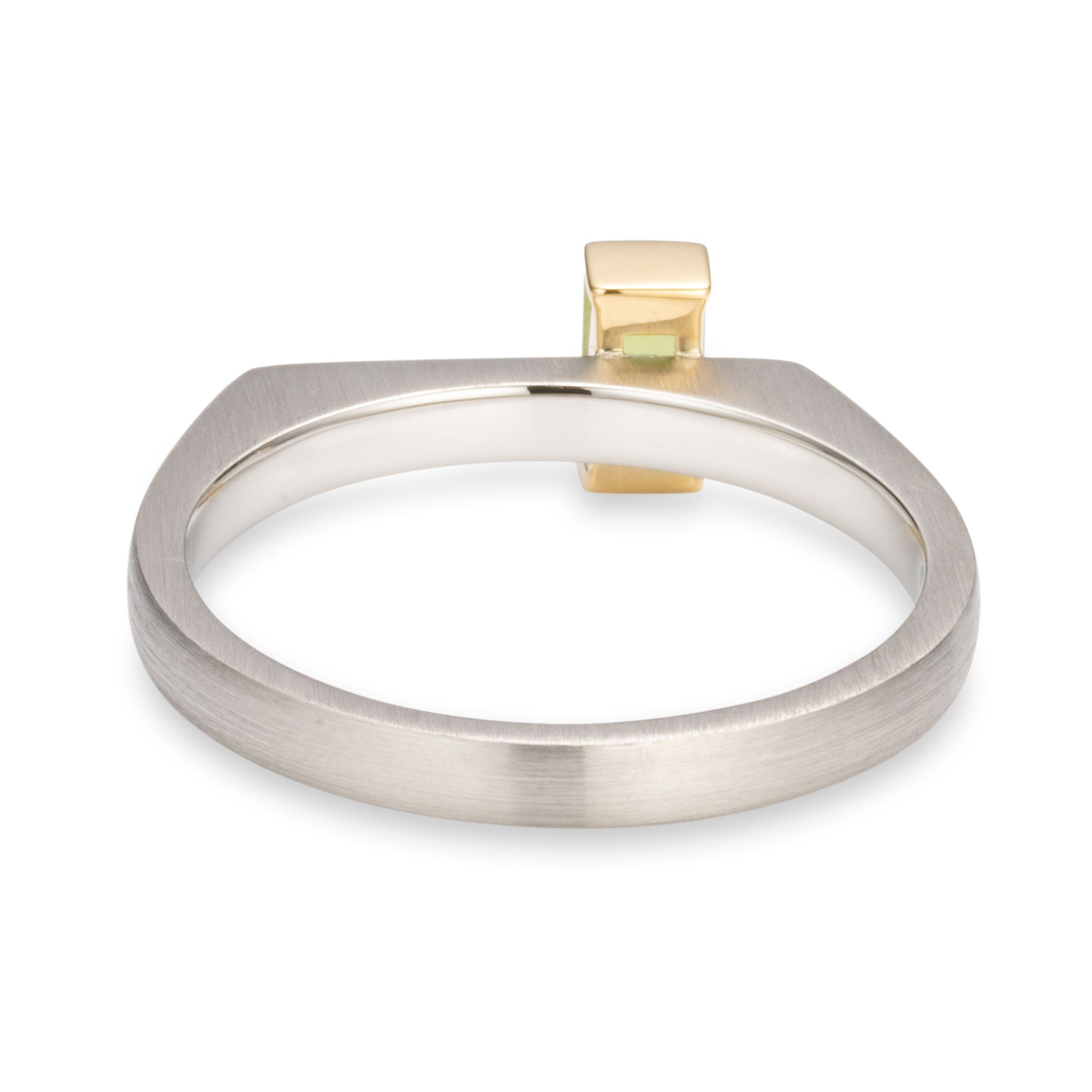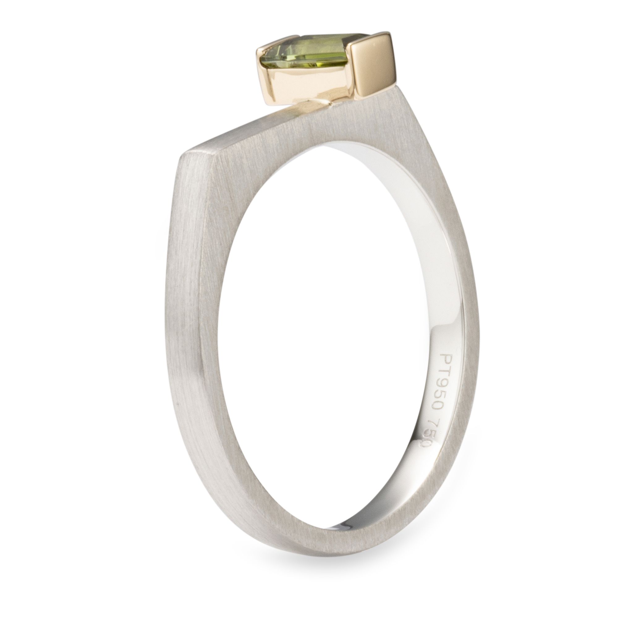 Der PLATINITY Ring mit einem grünen Turmalin im Baguetteschliff hat Wärme und Ausstrahlung.