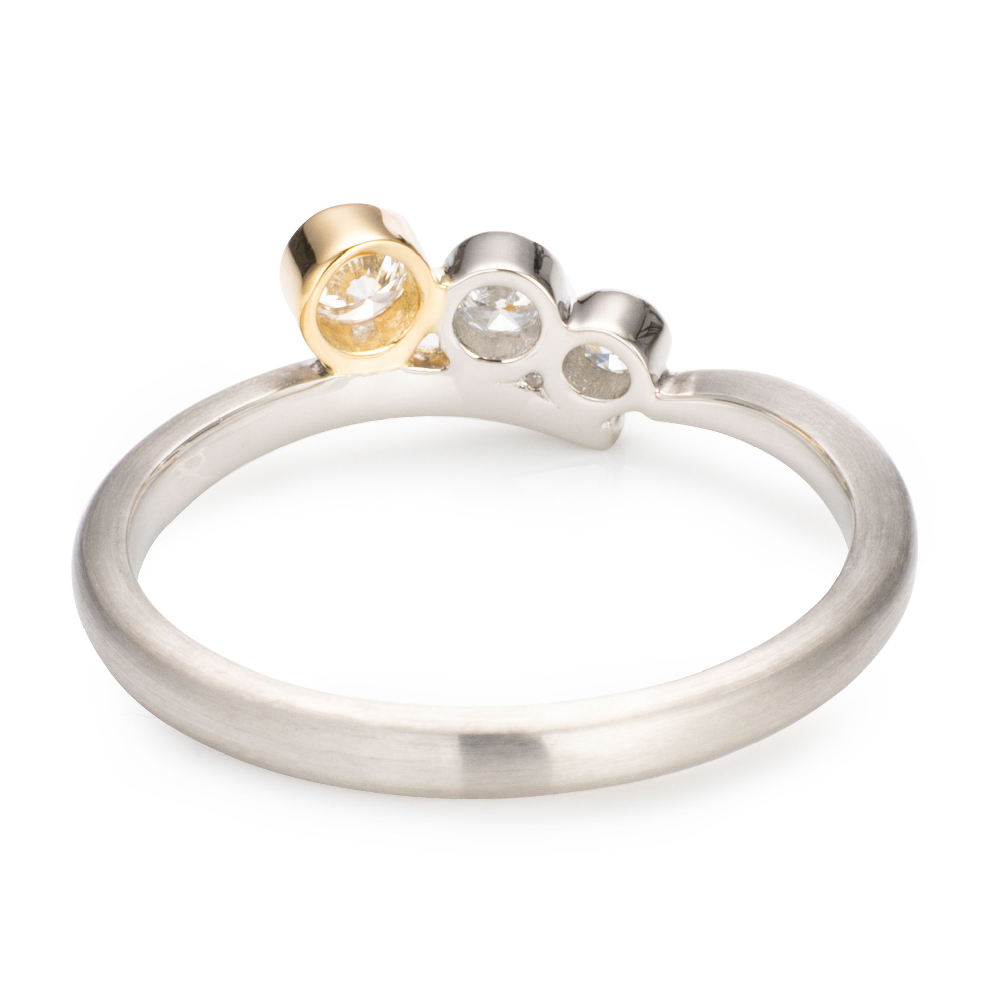 • 3 Diamanten, Brillantschliff, feines Weiß/SI, zusammen ca. 0,22 Karat, Zargenfassungen