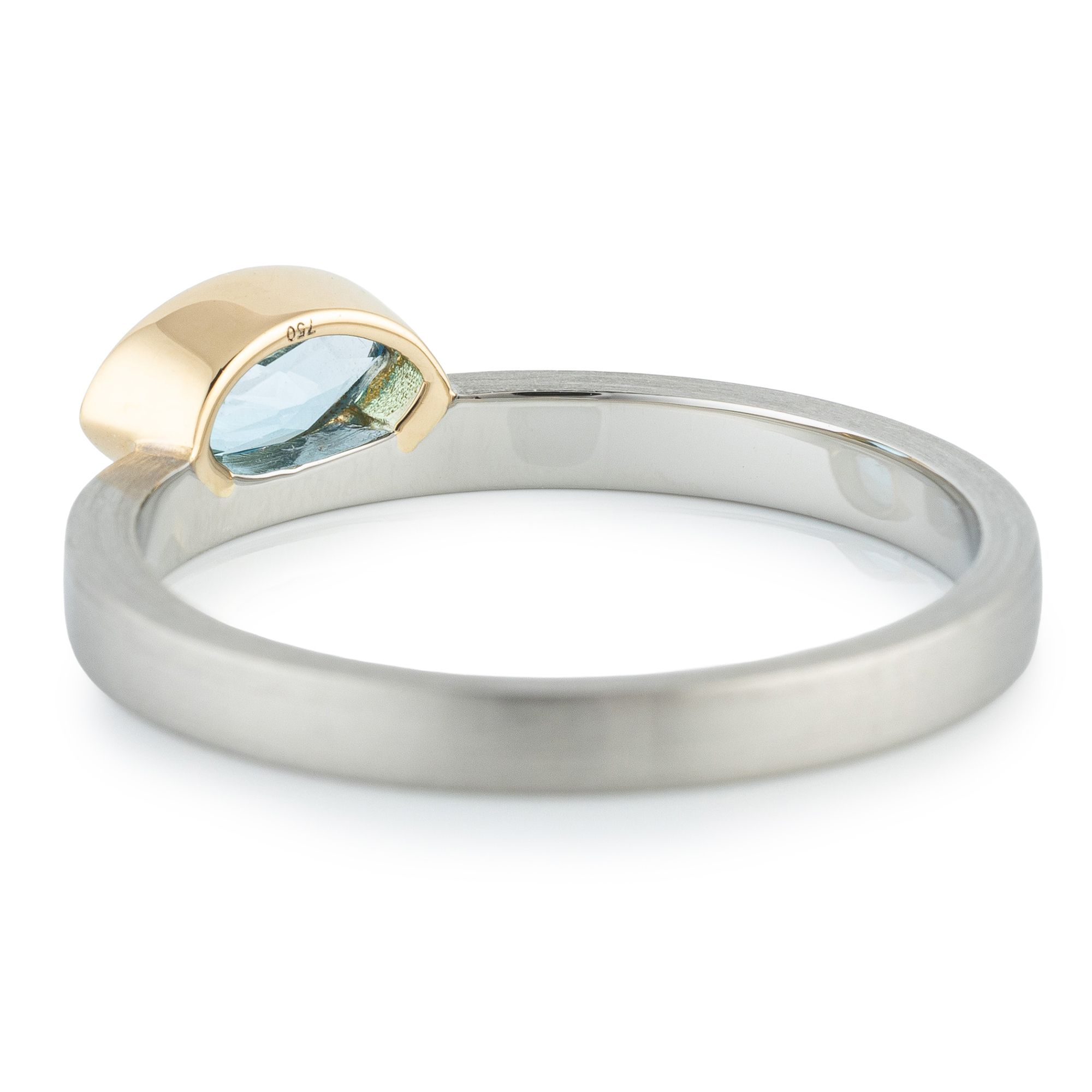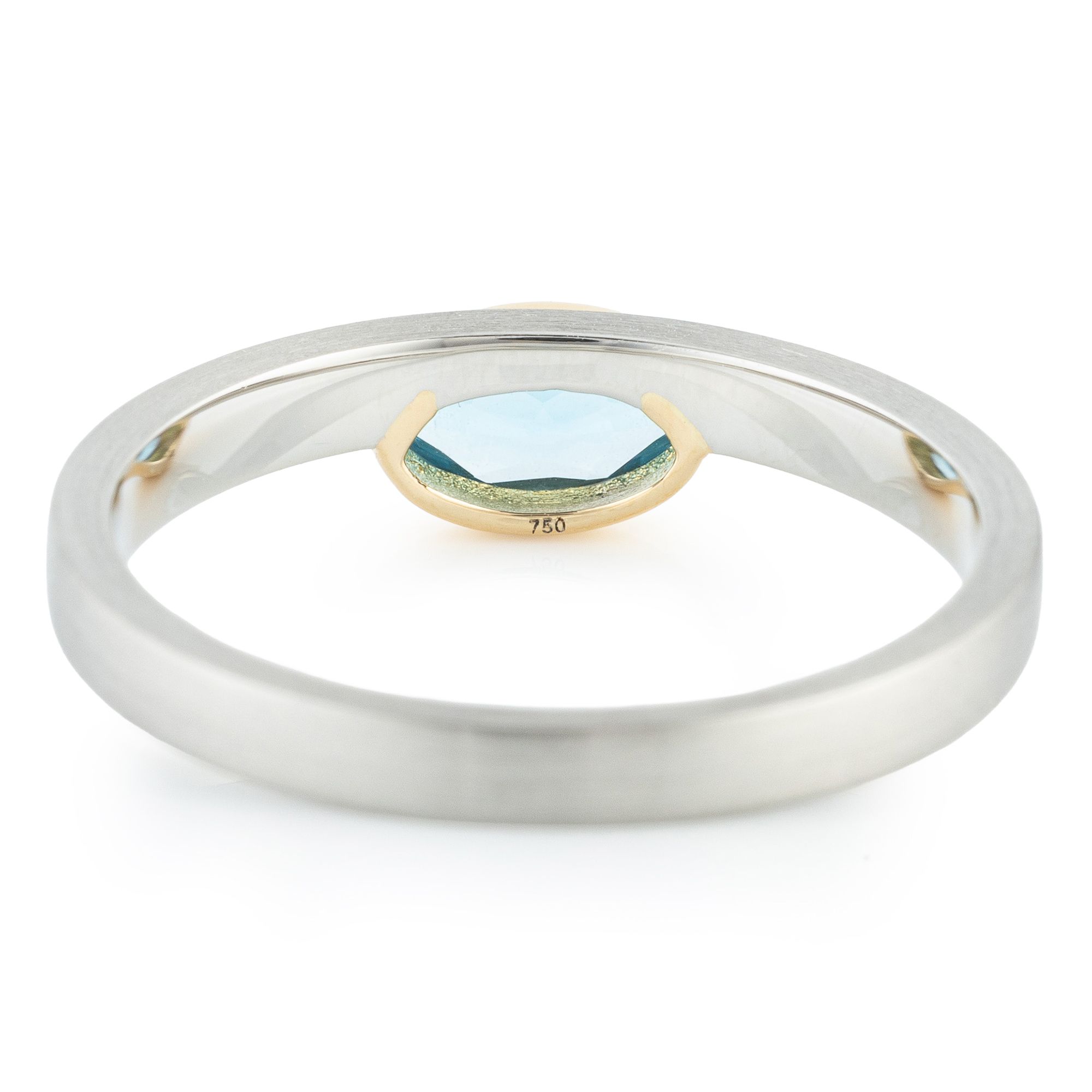 • behandelter Swiss Blautopas, Navetteschliff, ca. 7 x 3,5 mm, ca. 0,55 Karat, Zargenfassung