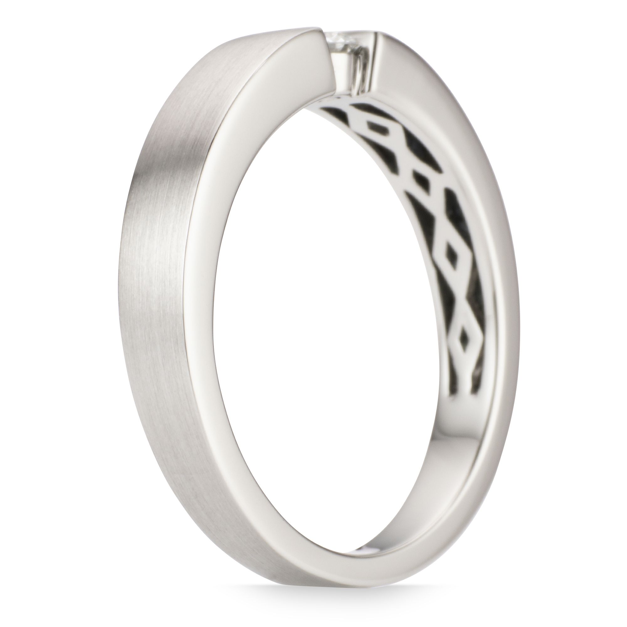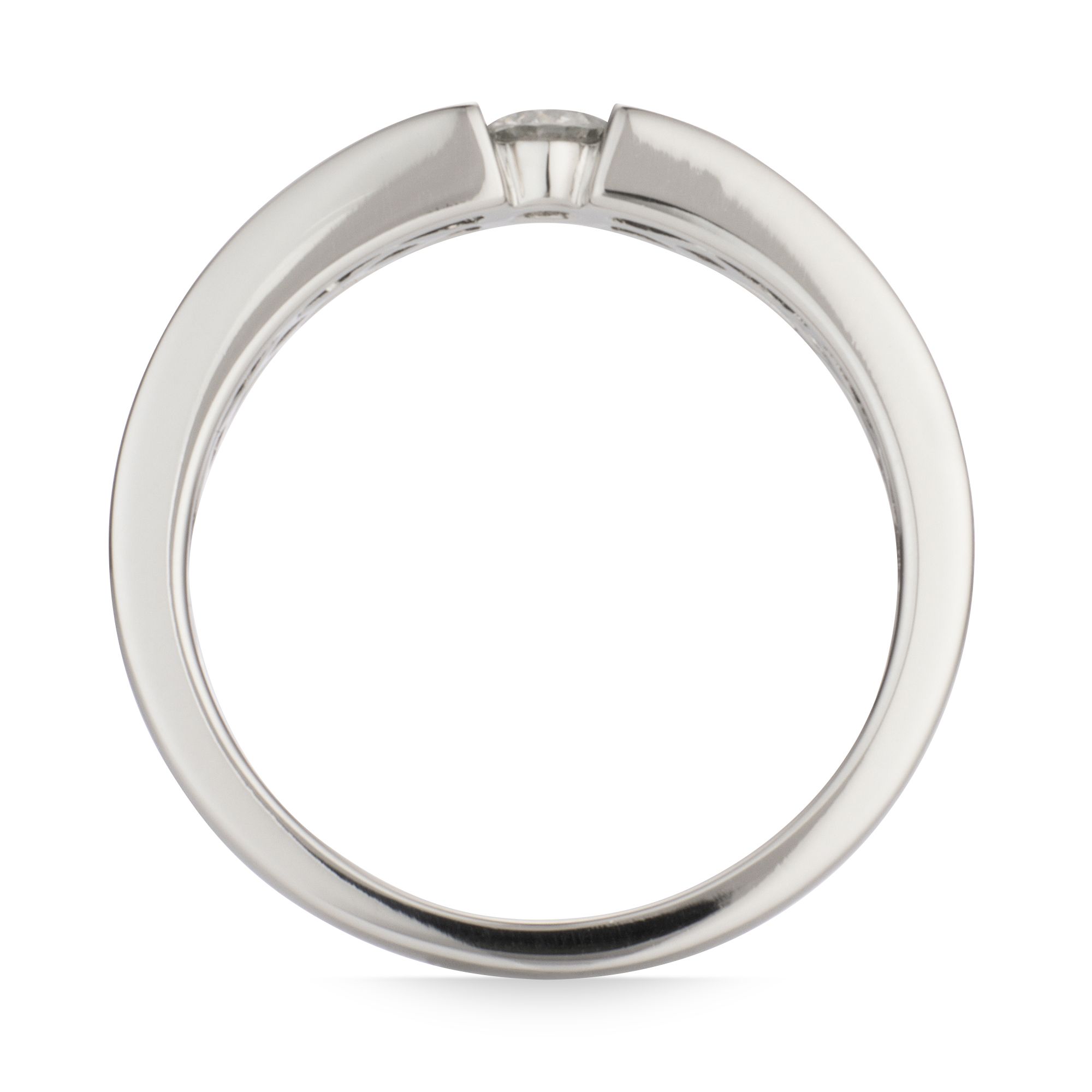 Mit zeitloser Raffinesse präsentiert der Ring von PLATINITY einen strahlenden Brillanten in moderner Spann-Optik auf edlem Platin.