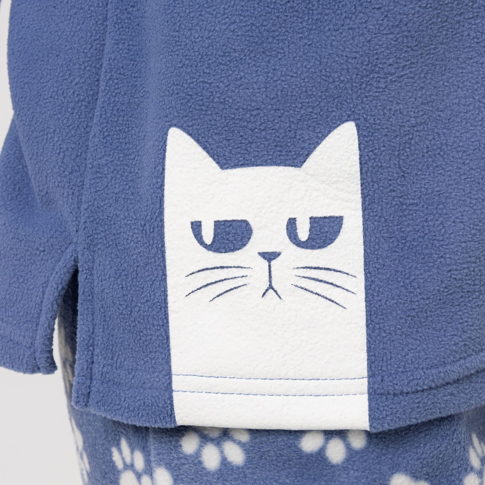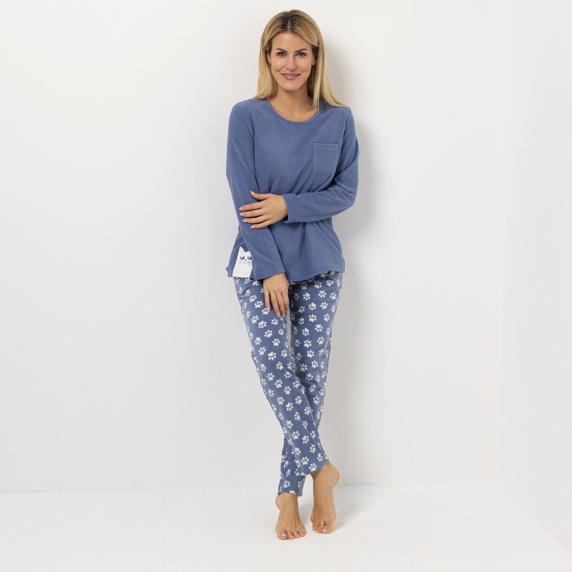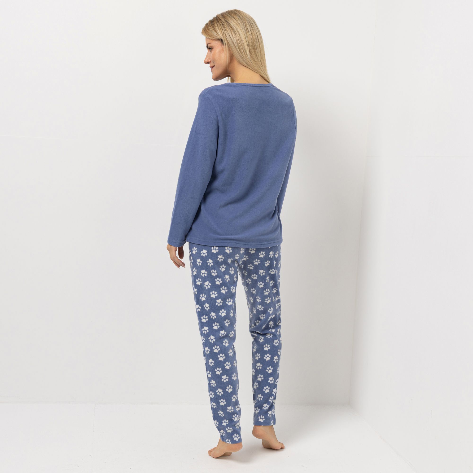 POLARSTERN Pyjama-Set Mikrofaser Fleece uni Oberteil bedruckte Hose