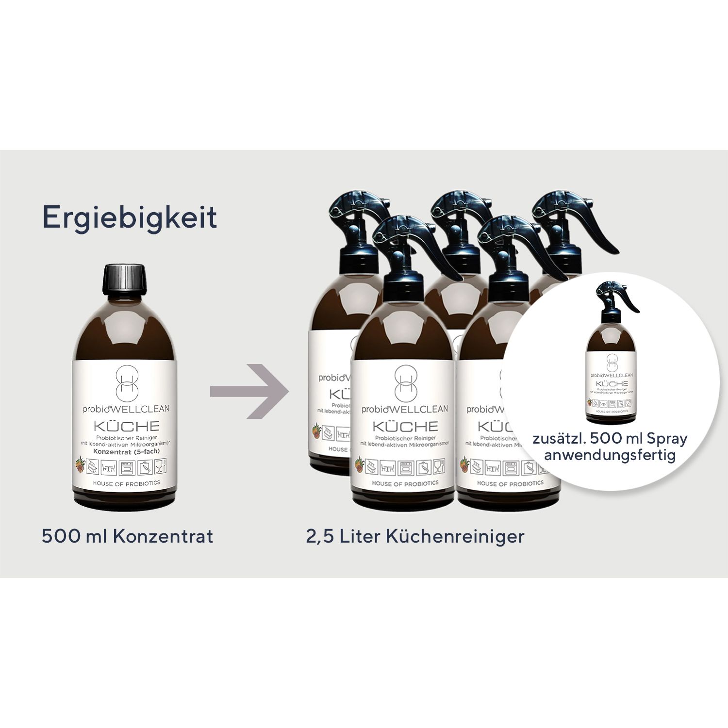 probioWELLCLEAN kombiniert moderne Reinigung mit sorgfältig ausgewählten probiotischen Mikroorganismen und gestaltet die Reinigung deiner Küche einfach und effektiv. Die spezielle Formel wurde darauf ausgelegt, typische Rückstände wie Fett oder starke Verschmutzungen auf natürliche Weise zu entfernen und dabei unerwünschte Gerüche direkt anzugehen. So wird deine tägliche Küchenpflege unkompliziert unterstützt – von den Arbeitsflächen bis zum Grill.