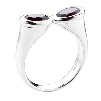 Dieser attraktive Ring ist ein Statement: Er kommt in rhodiniertem 925er Silber in massiver Verarbeitung. Auf dem Ringkopf funkeln dem Betrachter 2 beeindruckende Purple Granat-Ovale entgegen. Ein Accessoire, das Sie mühelos zum Mittelpunkt werden lässt!
